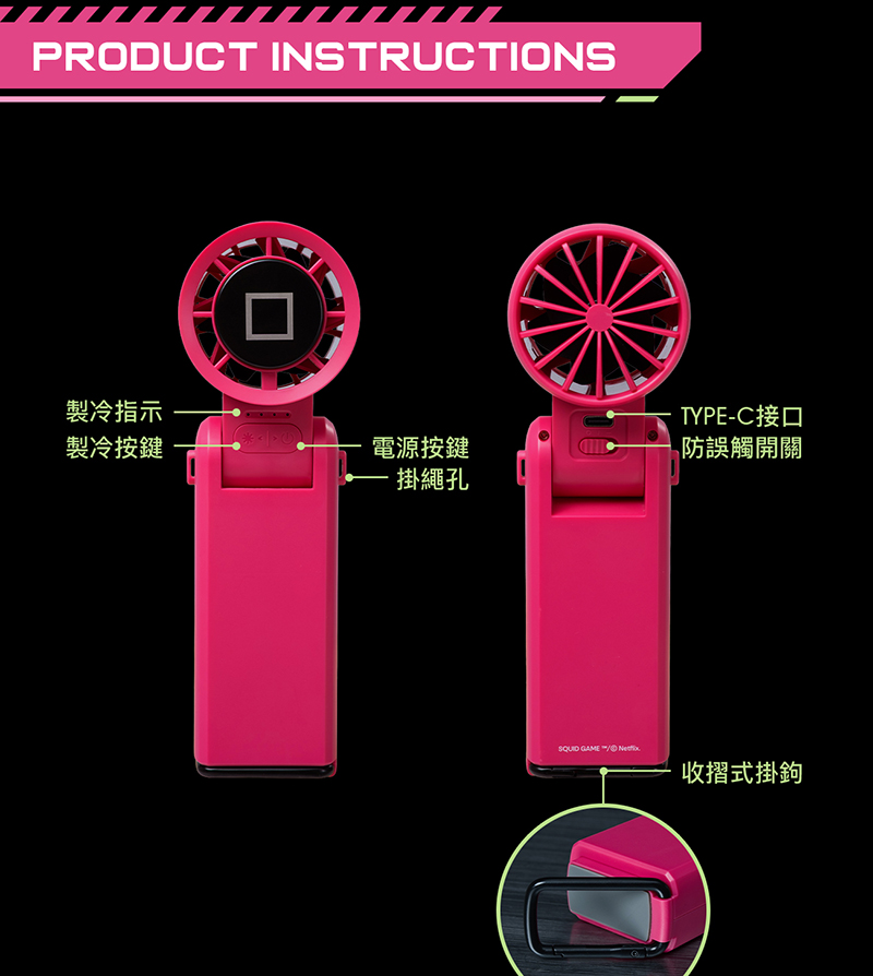 【BIGGER】 魷魚遊戲 COCOLD冰感摺疊製冷風扇 附掛繩 附吊飾盲袋 - 方形守衛