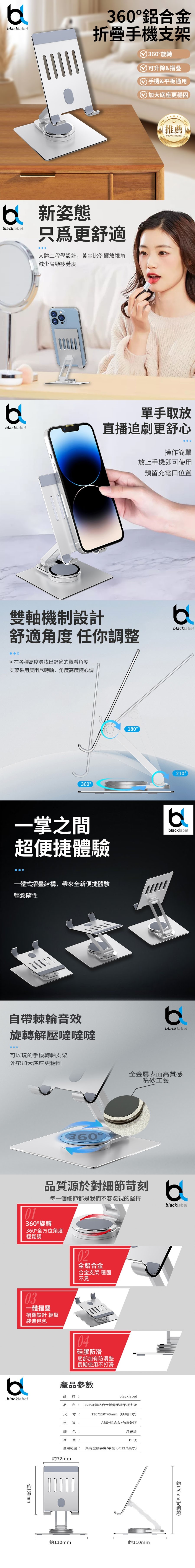 blacklabel 360旋轉鋁合金折疊手機平板支架