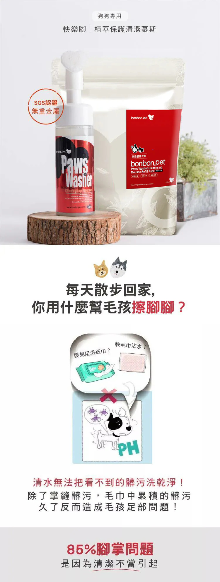 蹦蹦跳 狗用腳掌清潔慕斯150ml+護掌按摩棒8g 組