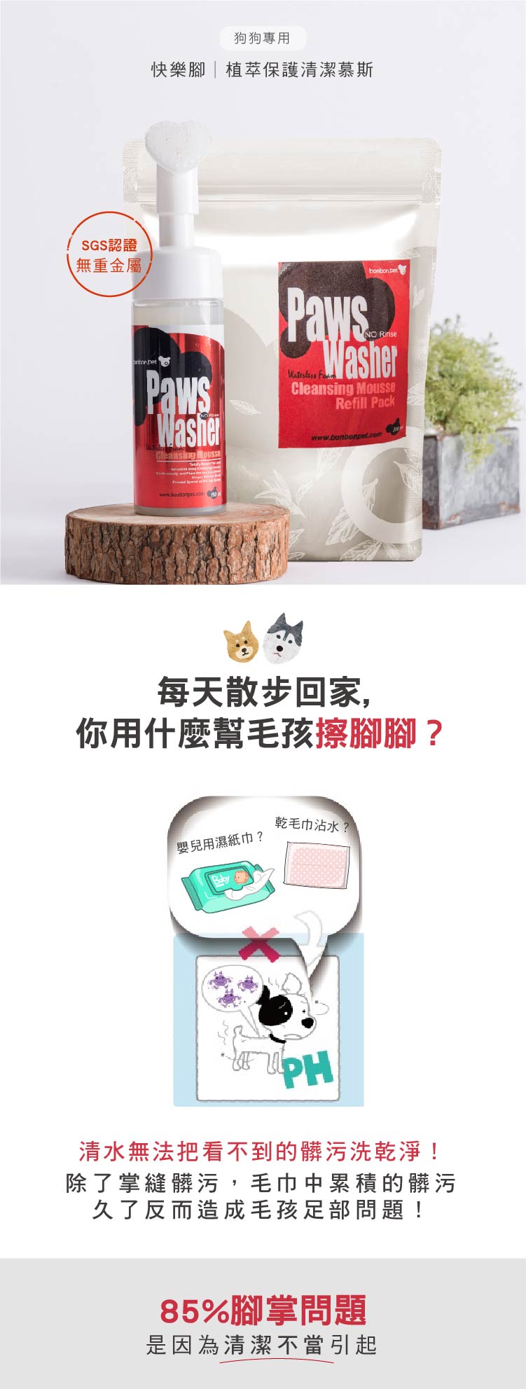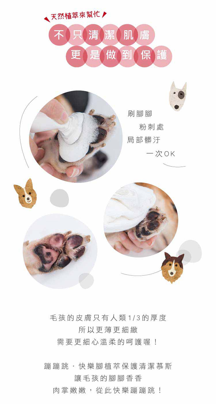蹦蹦跳 草本潔淨/ ”狗狗專用”快樂腳-清潔慕斯150ml 效期26年6月