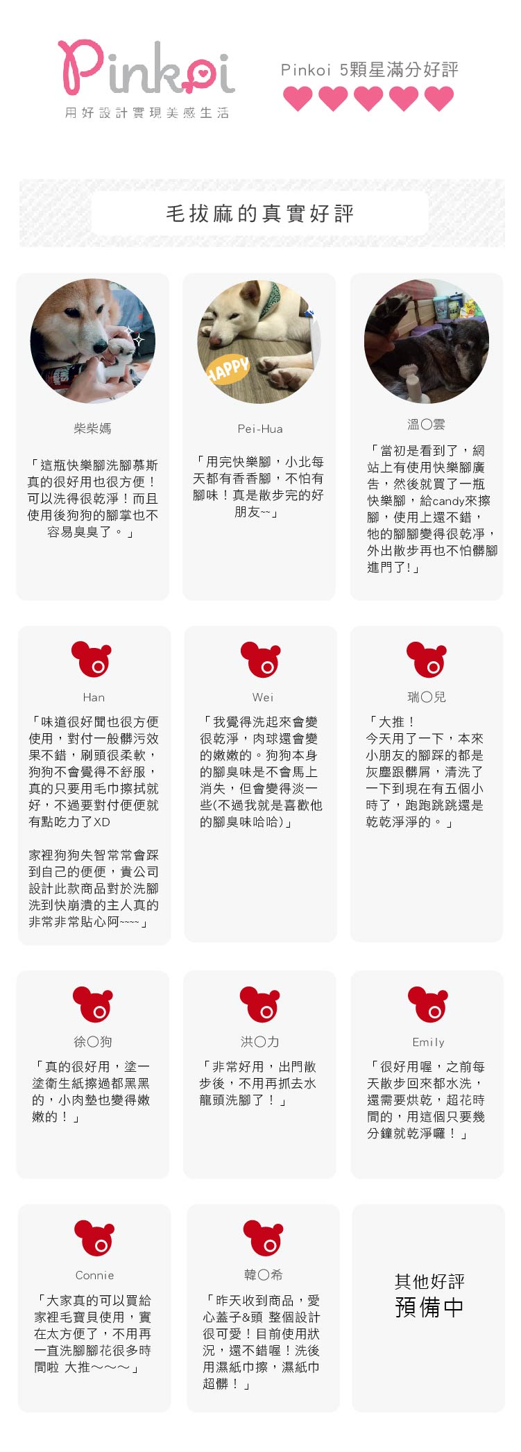 ◎ 首創愛心造型矽膠慕斯刷頭,單手按壓就可直接刷洗清潔,超方便!◎ 草本營養精華成分,刷洗後不用沖水!直接拿乾毛巾擦拭即可◎ 瞬間除臭效果超好!針對趾縫或寵物局部清潔,潤毛及保護皮膚◎ 看得見的髒污,只要輕輕刷,通通清潔溜溜◎ 安全無害不流淚、不含螢光劑,如果舔到也ok!◎ 如果是6個月以下的毛孩,使用後一定要吹乾喔,因為他們還小,吹乾可以避免著涼喔