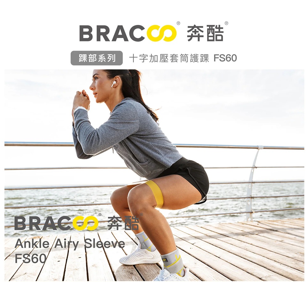 [佑全保健藥妝]BRACOO奔酷腳踝(十字加壓套筒 S/M灰) FS60