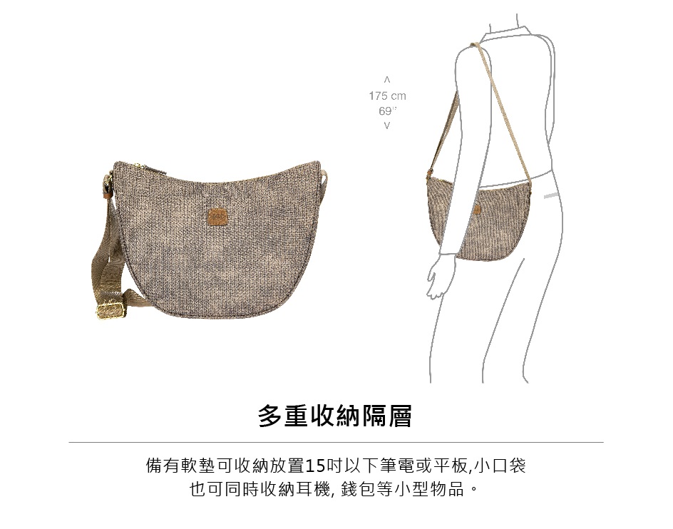 【Bric's】 X-collection 半月側背包 BXG45052 - 混羊毛堅果色