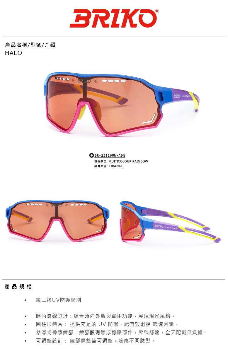 【複製】【BRIKO】HALO 運動太陽眼鏡-BR-23116UW-A0G