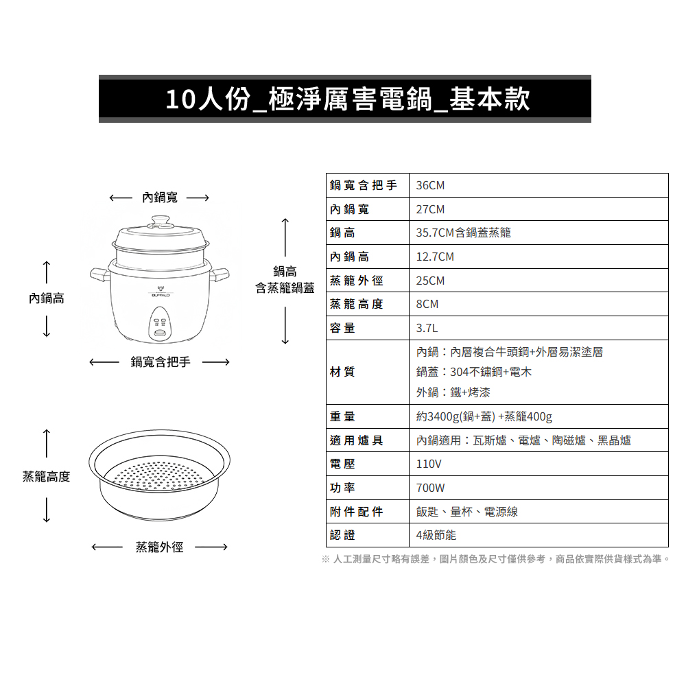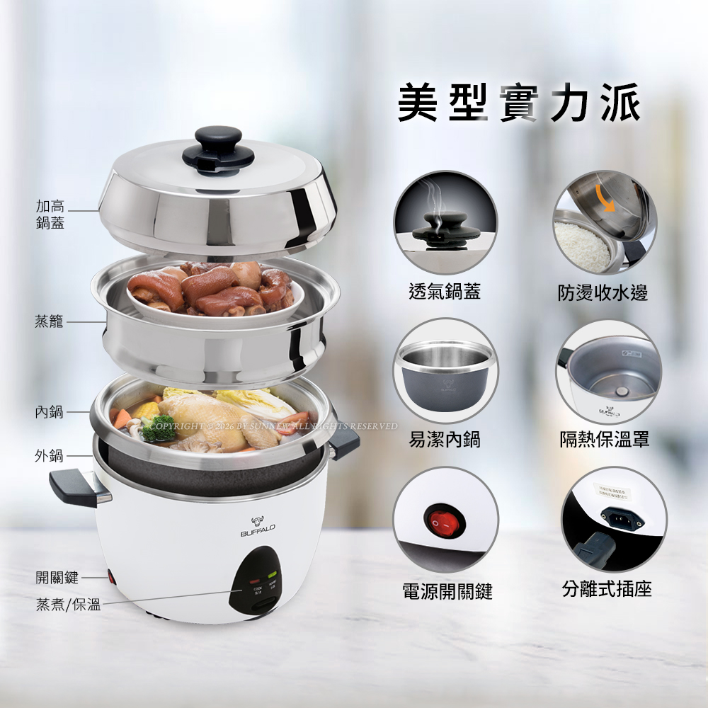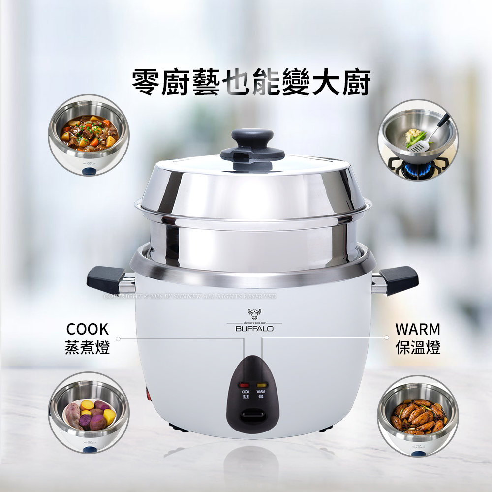 【Buffalo牛頭牌】10人份_極淨厲害電鍋_基本款 (白/可分離式牛頭鋼內鍋/304不鏽鋼)