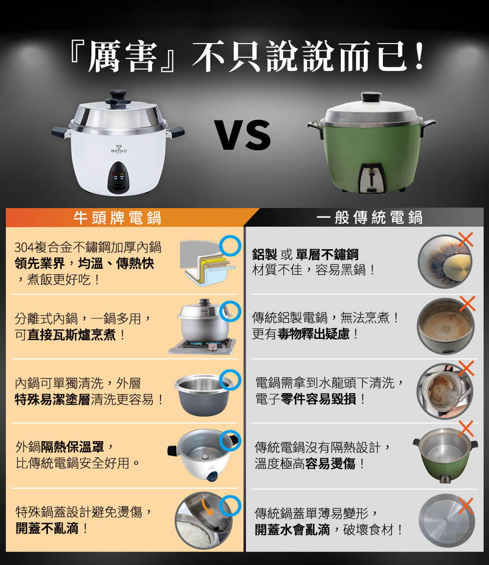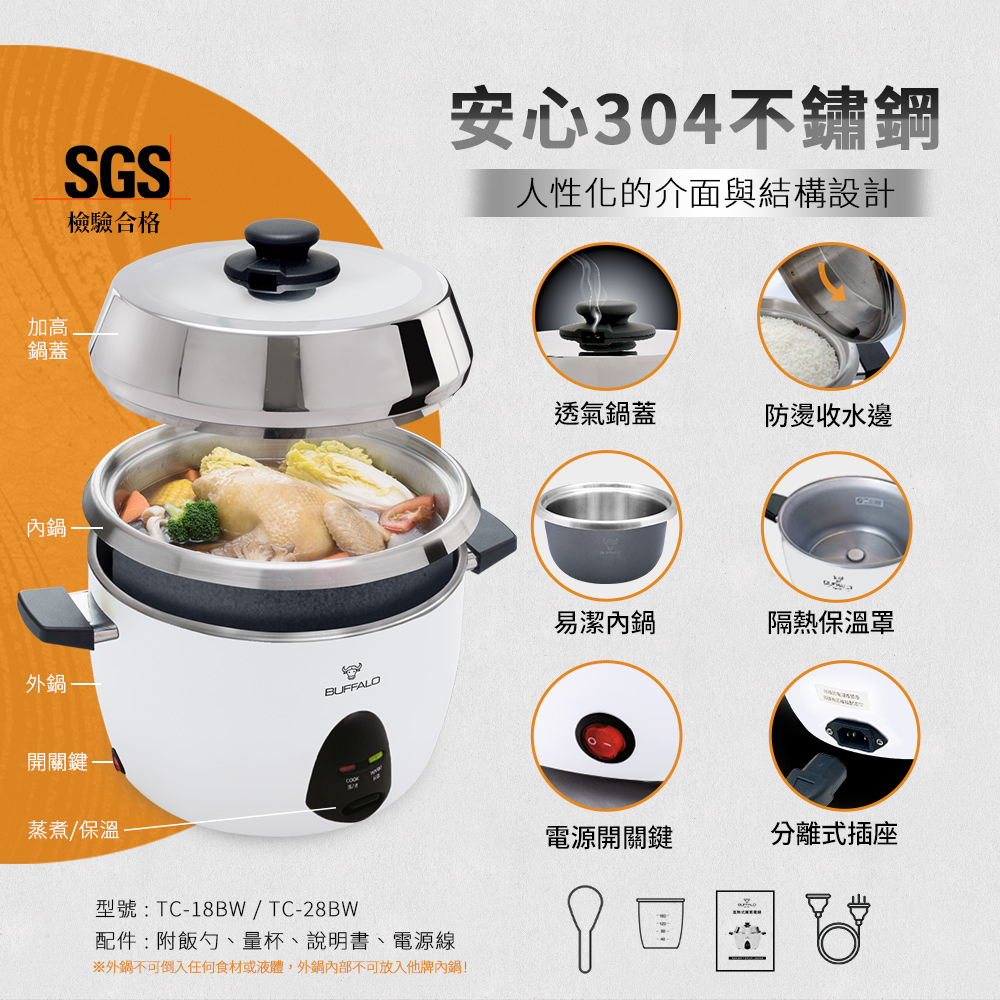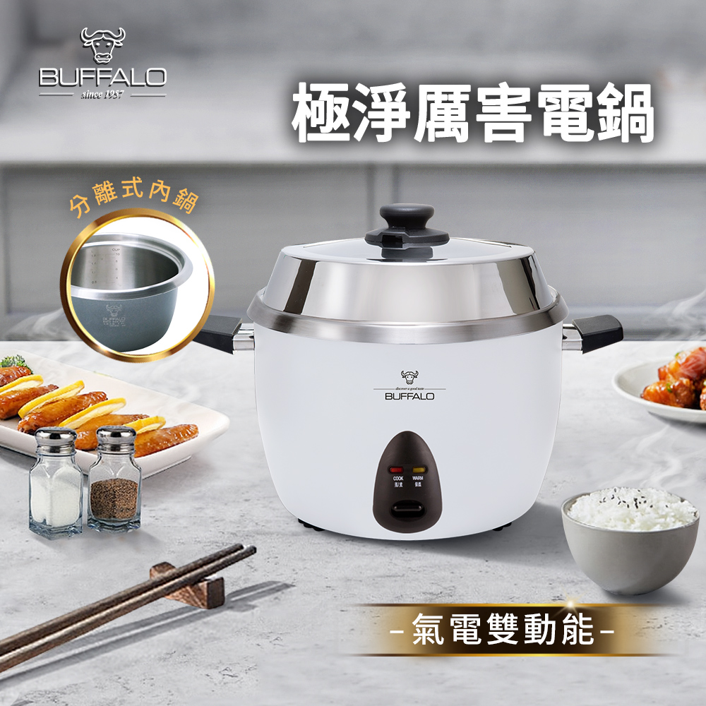 大降價! 厲害電鍋就是抗膨 【Buffalo牛頭牌】10人份極淨厲害電鍋/白TC18BW/可分離式牛頭鋼內鍋/304不鏽鋼