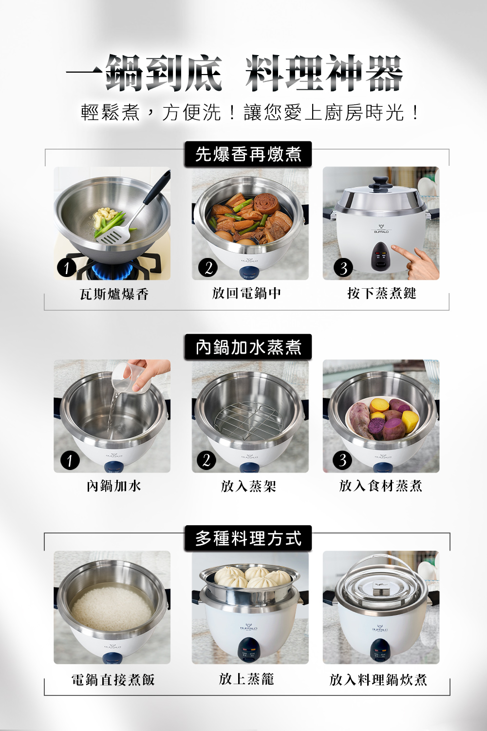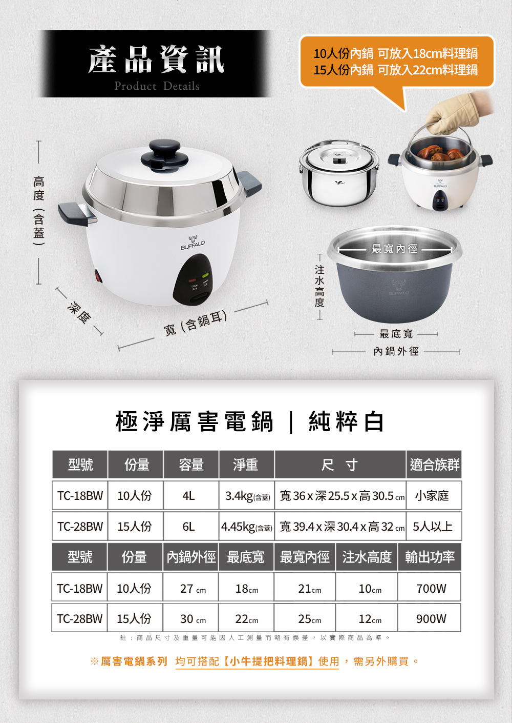 大降價! 厲害電鍋就是抗膨 【Buffalo牛頭牌】15人份極淨厲害電鍋/白TC28BW/可分離式牛頭鋼內鍋/304不鏽鋼