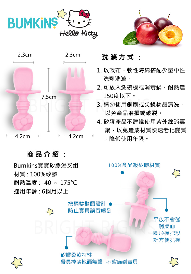Bumkins 寶寶白金矽膠湯叉組-Kitty