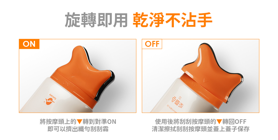 ◆按摩刮刮頭設計|邊擦邊推,吸收快又不沾手
