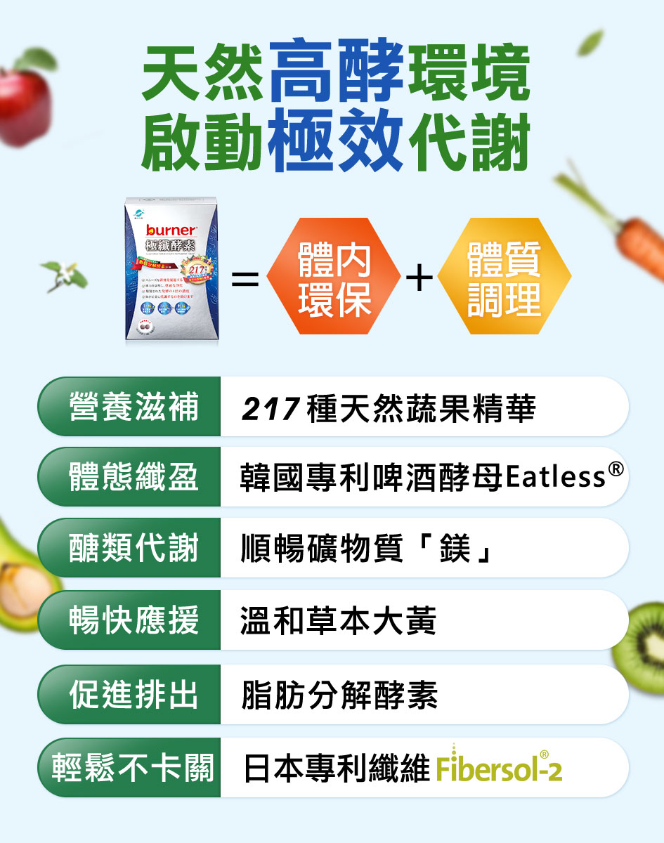 ★舒暢x輕盈x淨化x分解 ★幫助消化、促進腸道蠕動、增加排便、促進新陳代謝 ★217種天然蔬果高倍濃縮精華酵素,小分子好吸收