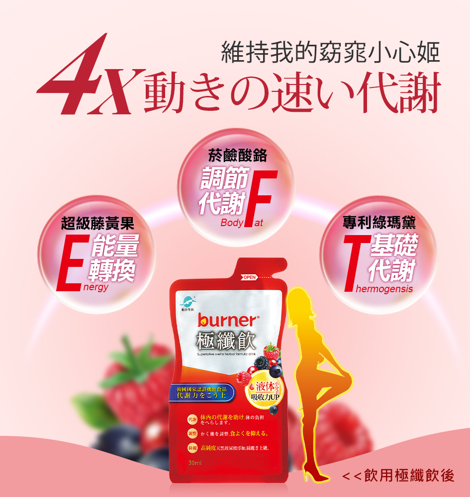 ※訂單數量請務必選擇雙數,例如2、4、6※實際數量請依照購物車為主★液態小分子6X速效好吸收 ★代謝X纖燃X潤澤,打造窈窕美姬