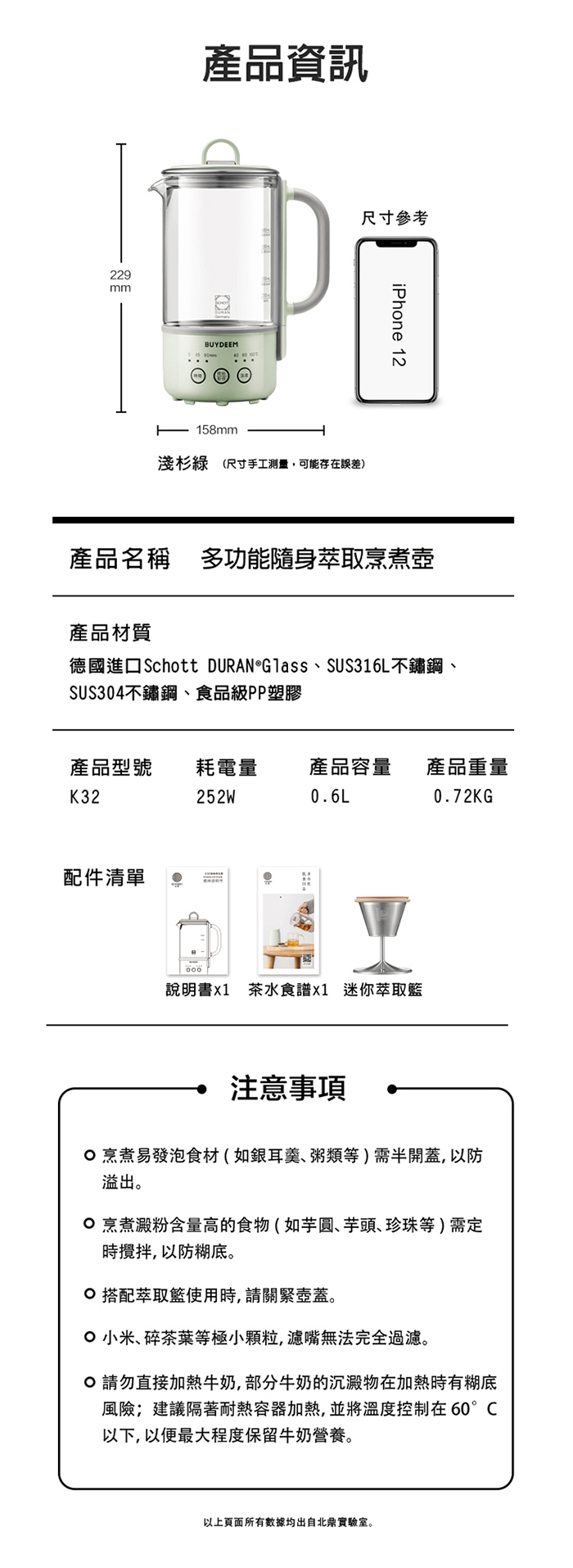【BUYDEEM北鼎】多功能隨身萃取烹煮壺 隨身養生壺 快煮個人壺 600ml(贈食譜)K32-台灣公司貨