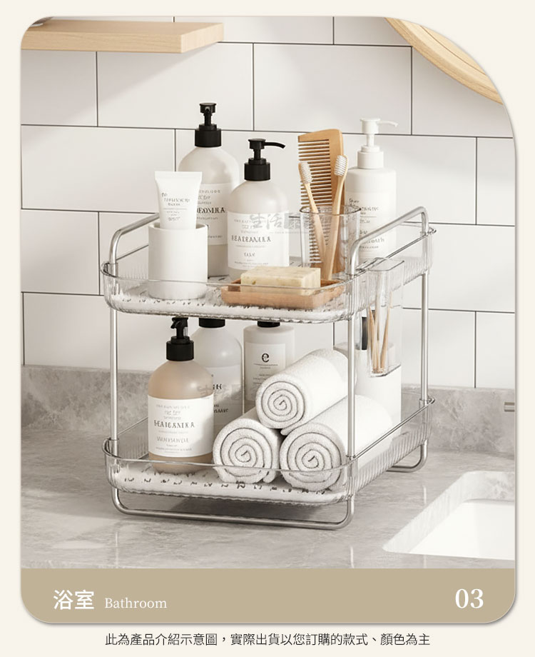 CaféDeck 雙層瀝水收納架|杯具器具的質感收納選擇是否常常因為杯子、咖啡器具、餐具散落而感到凌亂?☕CaféDeck 輕奢風格的雙層瀝水收納置物架,將「收納」與「美感」完美結合,不論是 咖啡角落、廚房、浴室或梳妝台,都能幫助您提升整潔度與空間效率。✅ 雙層容量:可同時收納茶杯、馬克杯、咖啡杯、玻璃杯,空間翻倍更省位。✅ 瀝水設計:底層可快速瀝水,避免積水滋生細菌,保持杯具乾爽。✅ 開放式架構:取放方便,日常使用不費力,讓收納變得更輕鬆。✅ 貼心小掛籃:更是讓小物品有了自己的家,再也不會找不到東西了!🏆🗂️✅ 加高間距:下層間距升級,瓶罐高物也能輕鬆放入。✅ 多功能用途:不僅能放器具杯具,浴室洗漱收納架、梳妝台化妝品架、廚房調味罐收納架也可以。✅ 質感設計:透明托盤搭配金屬框架,北歐風格簡約高級,實用與美觀兼具。💡 使用後你會發現👉生活整齊感提升:每個杯子、餐具都有固定位置,桌面瞬間乾淨。👉時間效率提升:早晨泡咖啡、準備飲品,器具一目了然,快速拿取。👉美感加分:讓收納不再只是功能,而是日常生活的一部分,提升居家氛圍。👉多場景靈活應用:無論是 廚房、浴室、客廳、梳妝台,皆能隨心擺放,打造您的專屬整理角落。✔️想要讓 咖啡器具更整潔、杯具更乾爽,這款 CaféDeck 雙層瀝水收納架 是您不容錯過的選擇!現在就入手,讓生活空間從凌亂走向質感 ✨。#收納好物 #雙層置物架 #咖啡角佈置 #杯具收納 #居家質感生活📣 FAQ (常見問答)Q1:這款收納架可以放多少個杯子?A1:依杯型大小不同,平均可放 6-10 個杯子,還能搭配收納餐具或瓶罐。Q2:適合用在浴室或化妝台嗎?A2:是的,具備瀝水功能與大容量設計,也非常適合收納洗漱用品與化妝品。Q3:收納架容易生鏽嗎?A3:架體採用防鏽材質設計,正常使用下耐用度高,不易生鏽。Q4:清潔方便嗎?A4:可拆卸托盤,輕鬆清洗,避免髒污堆積。Q5:需要組裝嗎?A5:簡單安裝即可完成,無需工具,快速上手。注意事項:1.請勿重摔或高處掉落,以免商品受損。2.請勿接近高溫或勿近火源處,以免商品受損。3.商品情境圖片僅供參考,實際出貨不含週邊道具及配件。4.購買前請先量測使用區域尺寸,確定無誤再購買以免尺寸不合,敬請謹慎選購。5.本商品需自行組裝,收到商品後請確實組裝,無誤後再將東西放入使用!
