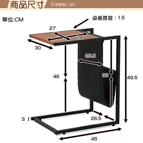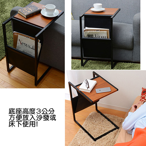 不景氣席捲全球,強調機能與外型的日本消費者,都開始回歸最基本的採購需求,設計新穎、簡單實用又兼具質感的商品目前在日本大行其道,《Justice》系列商品就是這波宅經濟的代表商品!《Justice》系列沙發側邊床邊桌,100%台灣生產日本熱銷,採用符合日本市場要求的板材,表面使用防刮耐潑水的加硬波麗美耐處理,鐵管則是高質感的粉體塗裝烤漆,無論是桌板的用料或鐵管的厚度與規格皆是外銷商品的要求,質感佳耐用性強,送禮自用都適宜!《Justice》系列沙發側邊床邊桌,具有高質感的軟質皮革置書雜誌架,圓弧流線造型優美,收納書報雜誌最適合,將本商品放置於沙發邊或床邊使用,ㄈ字造型設計,底部可以直接插進沙發底下或床底當成茶几桌、NB桌、閱讀桌、小餐桌、側邊桌,讓您可以隨意地在床上或沙發上閱讀、打字、用餐或打GAME,甚至直接擺放在沙發邊當成茶几或放置於床邊當成床邊桌都很合適,腳座底下也設計了可以微調高度的腳墊,防止可能因地面不平帶來的搖晃,外銷品質、用料實在、貼心設計與不思議的價格,買了一定不會後悔!
