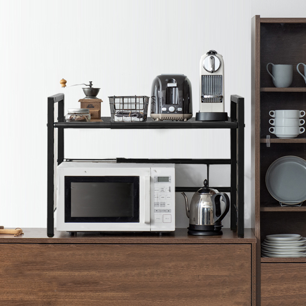 《C&B》元森廚房桌上流理台上伸縮單層置物架/台灣製造-黑色