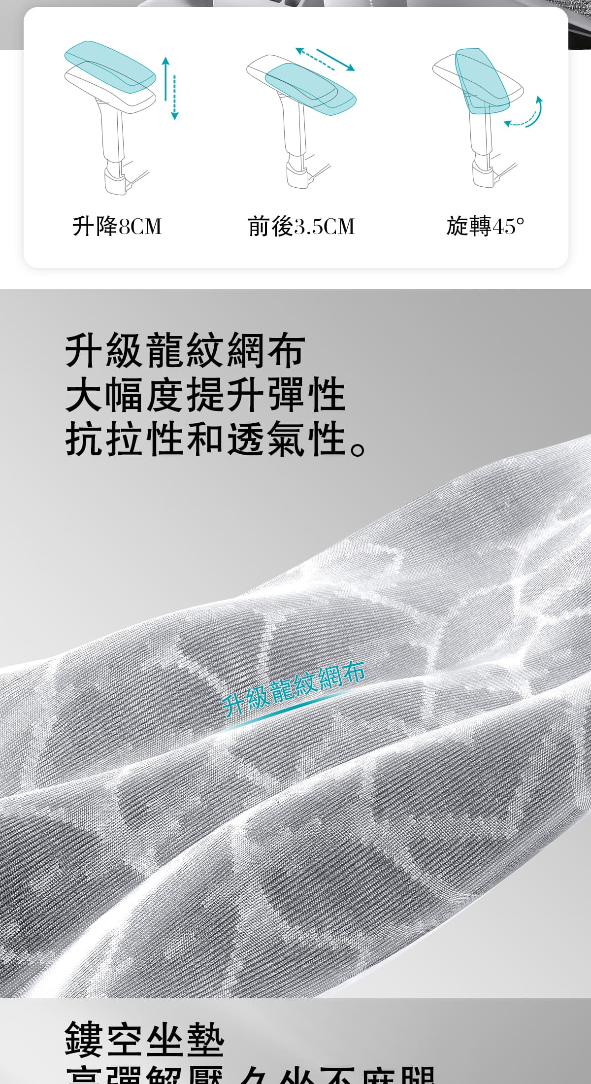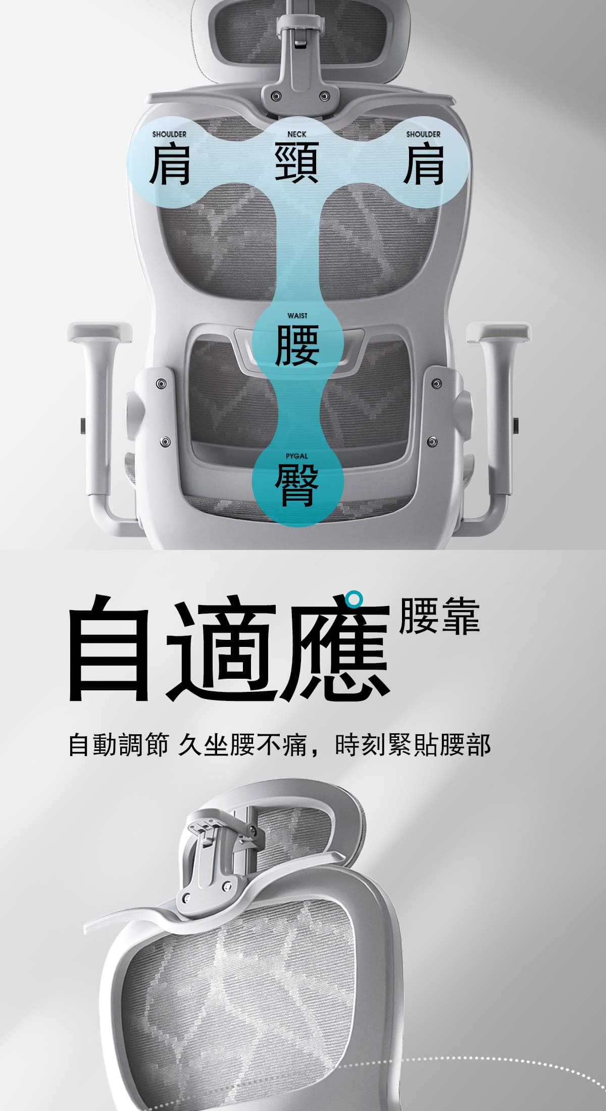 -分離式懸浮靠腰,舒適貼合