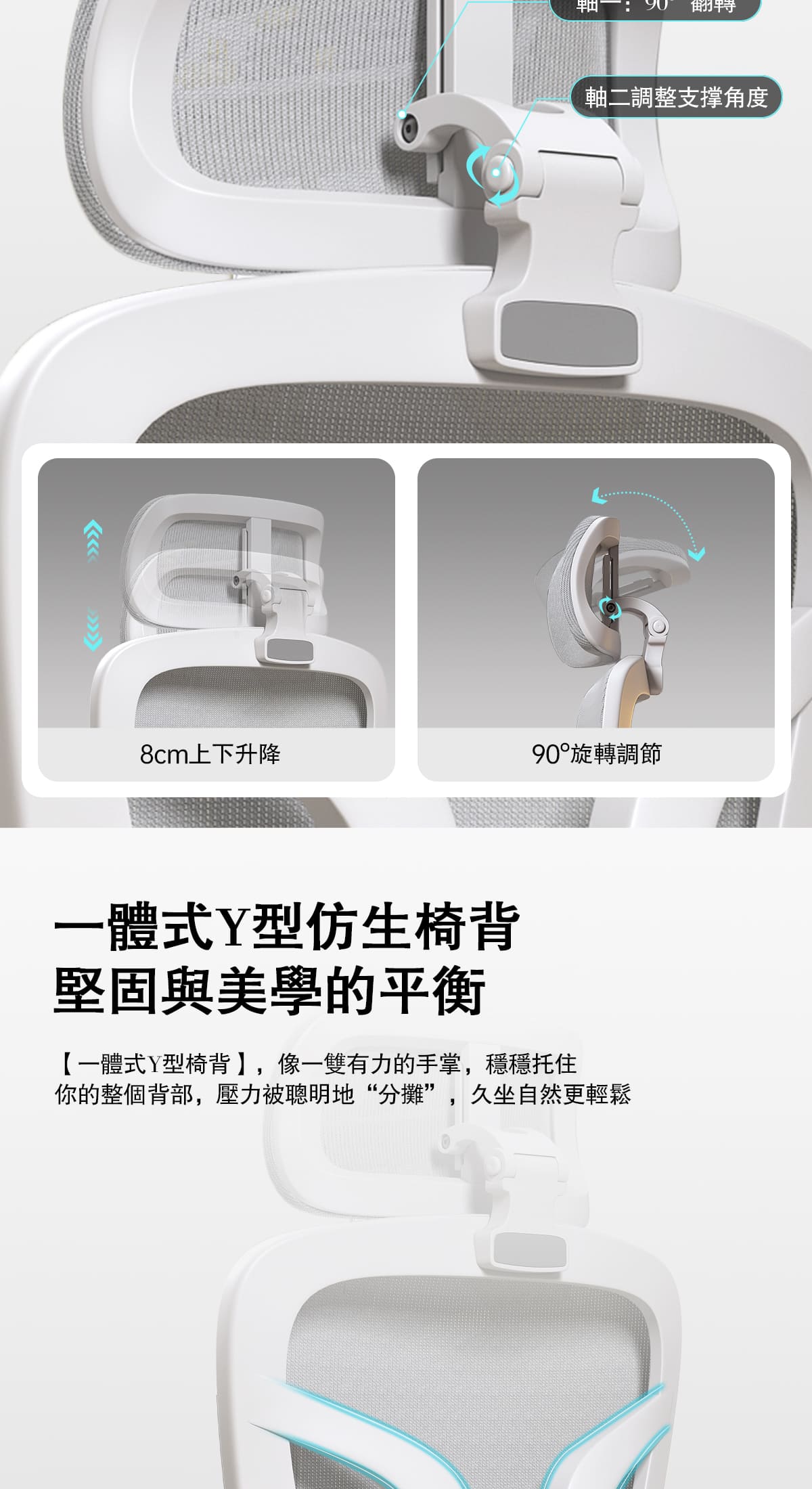 -3D調節頭枕+3D多功能扶手,適應多種使用
