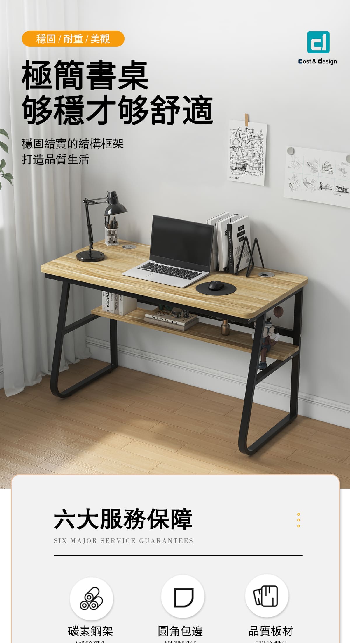 [C&D]極簡風書桌80款-優雅胡桃(黑架)