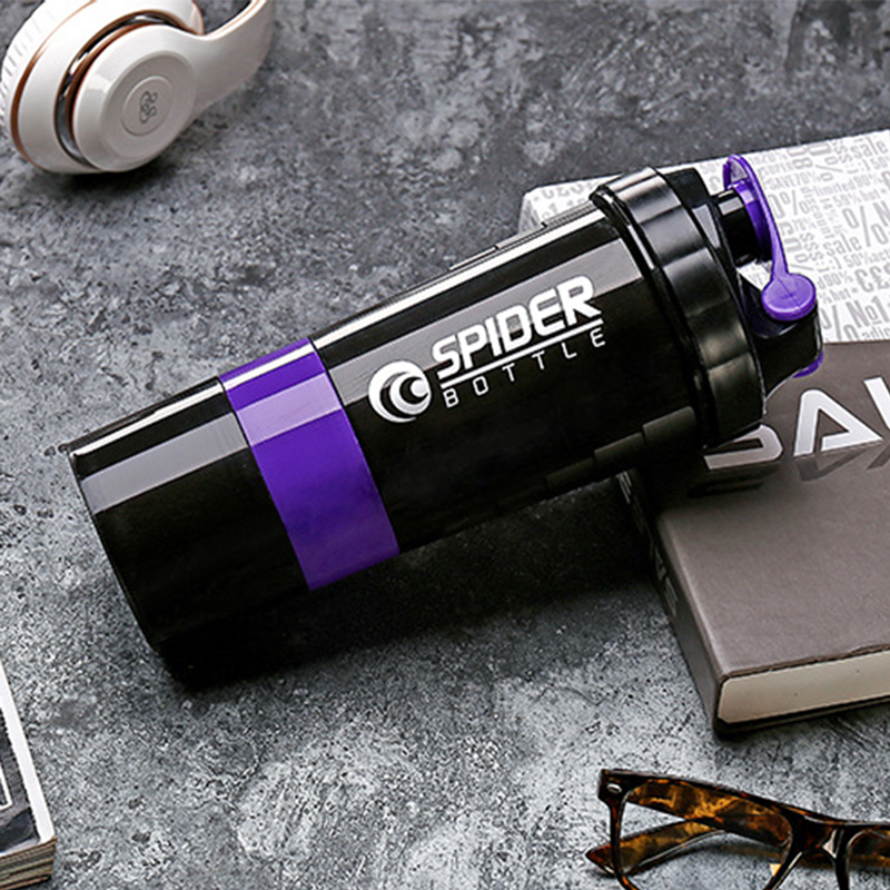 500ml 健身搖搖杯「附蛋白粉收納盒+攪拌球」