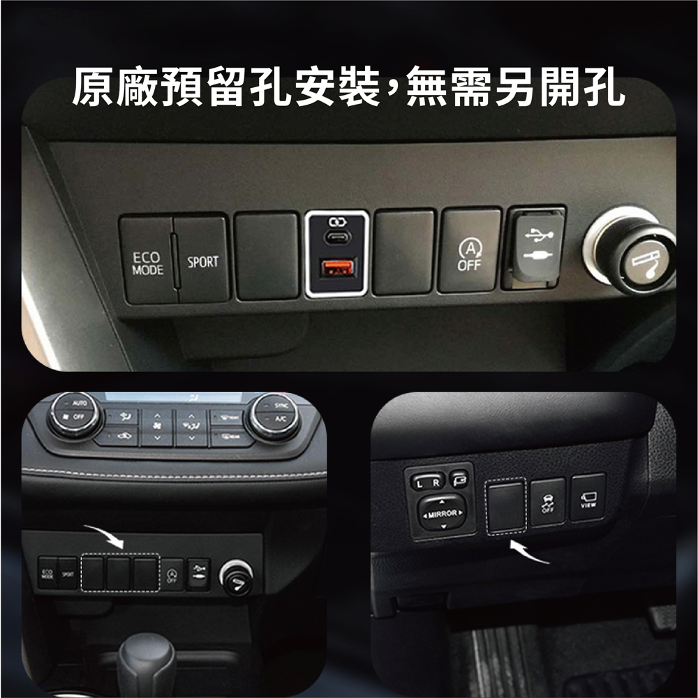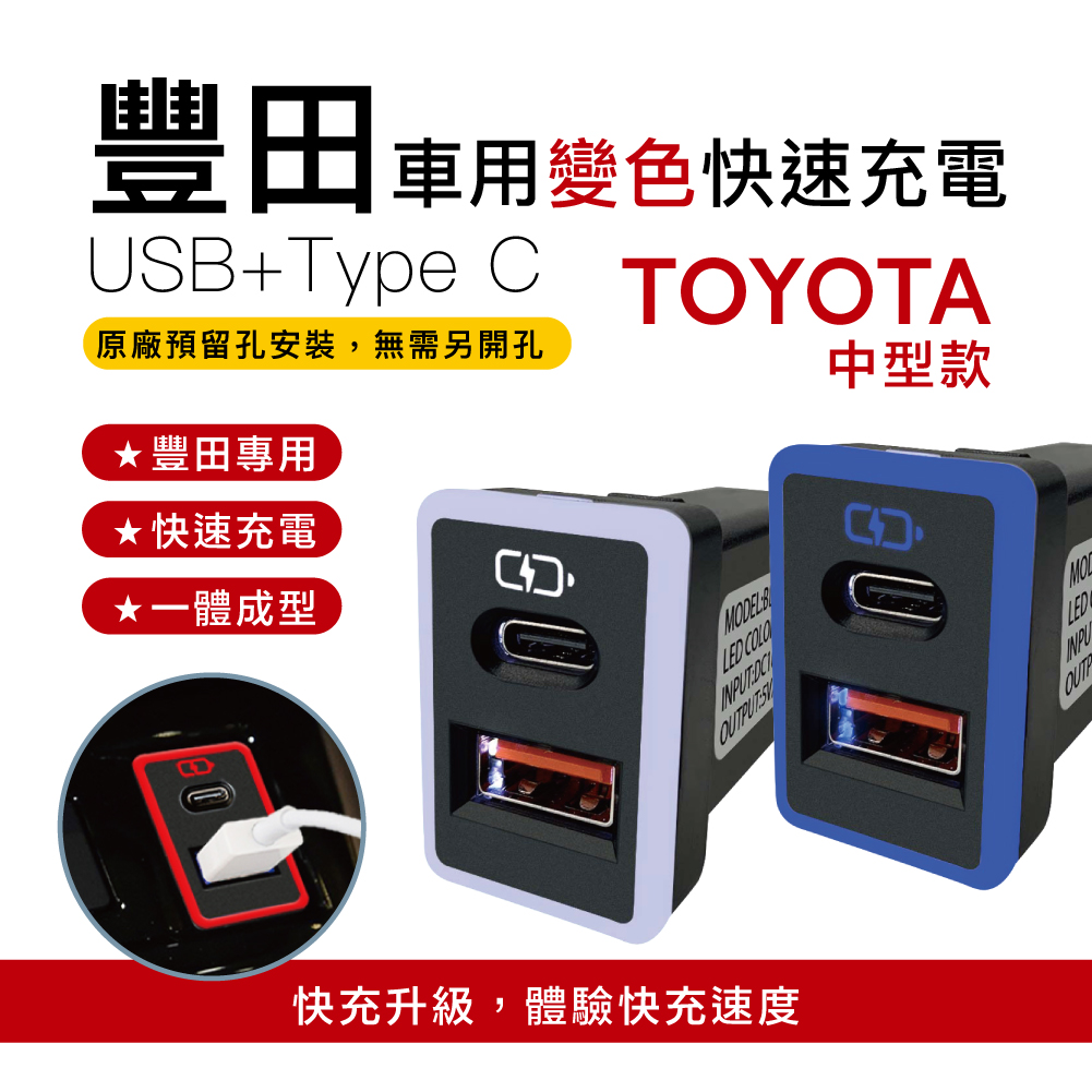[CARSTER]豐田TOYOTA 中型款變色燈車充|TYPE-C+USB 雙孔|預留孔3.0快充「附翹棒」