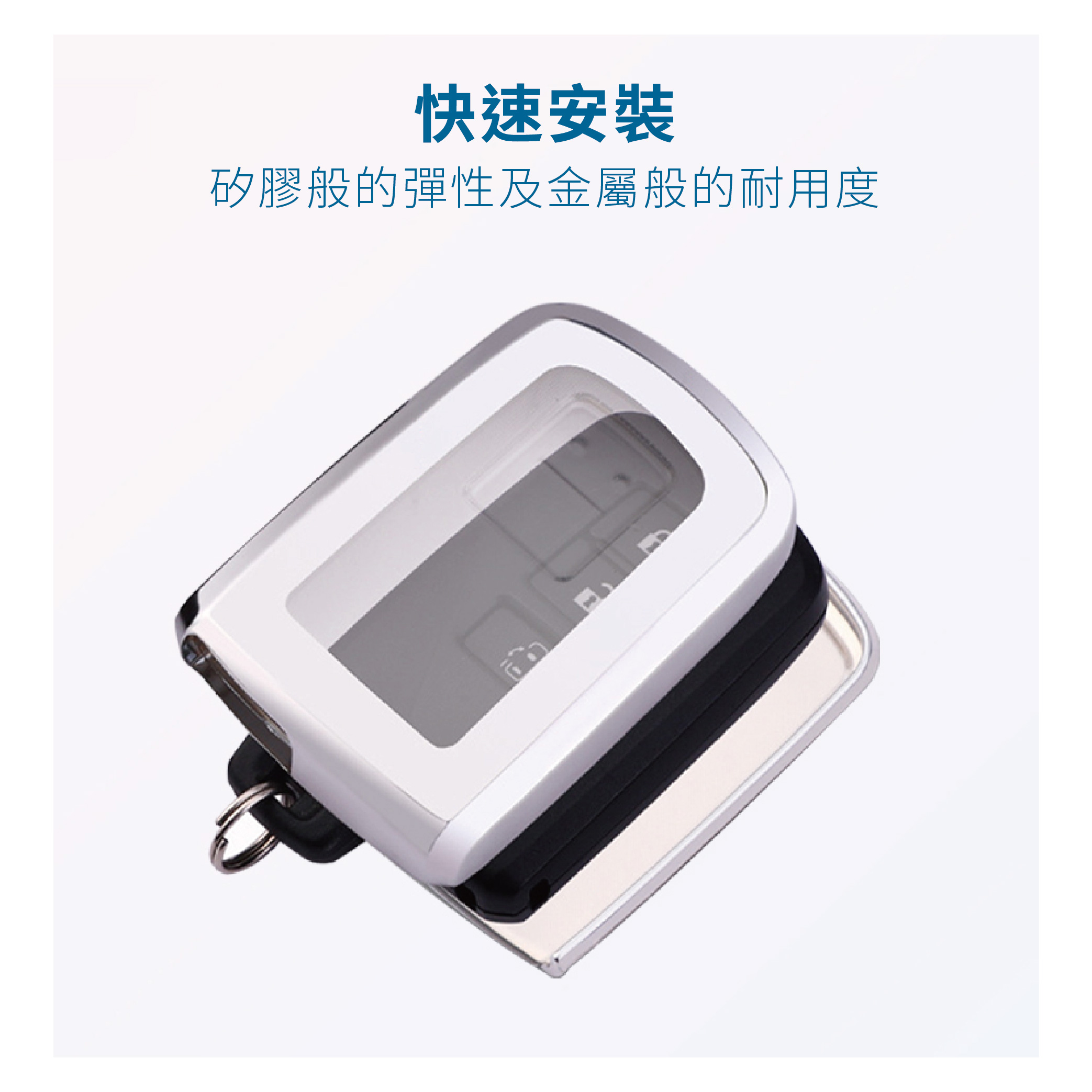 【產品優勢】★年輕簡約配色。★納米TPU材質可反複使用便於清洗★柔韌有彈性的透明膜可防止指甲劃傷按鍵★手感舒適柔軟,回彈性強★不影響信號 ,按鍵靈敏不影響按鍵感應,信號依舊★鏡面電鍍工藝,耐刮防摔★360° 全面保護,防爆 抗摔 高檔時尚 無信號影響 全包防水防刮 保護愛車鑰匙★雙層保護,集美觀實用於壹身★分體式安裝設計,TPU材質環保時尚★量身定制的原始汽車鑰匙★散熱材料 – 吸汗, 防止異味