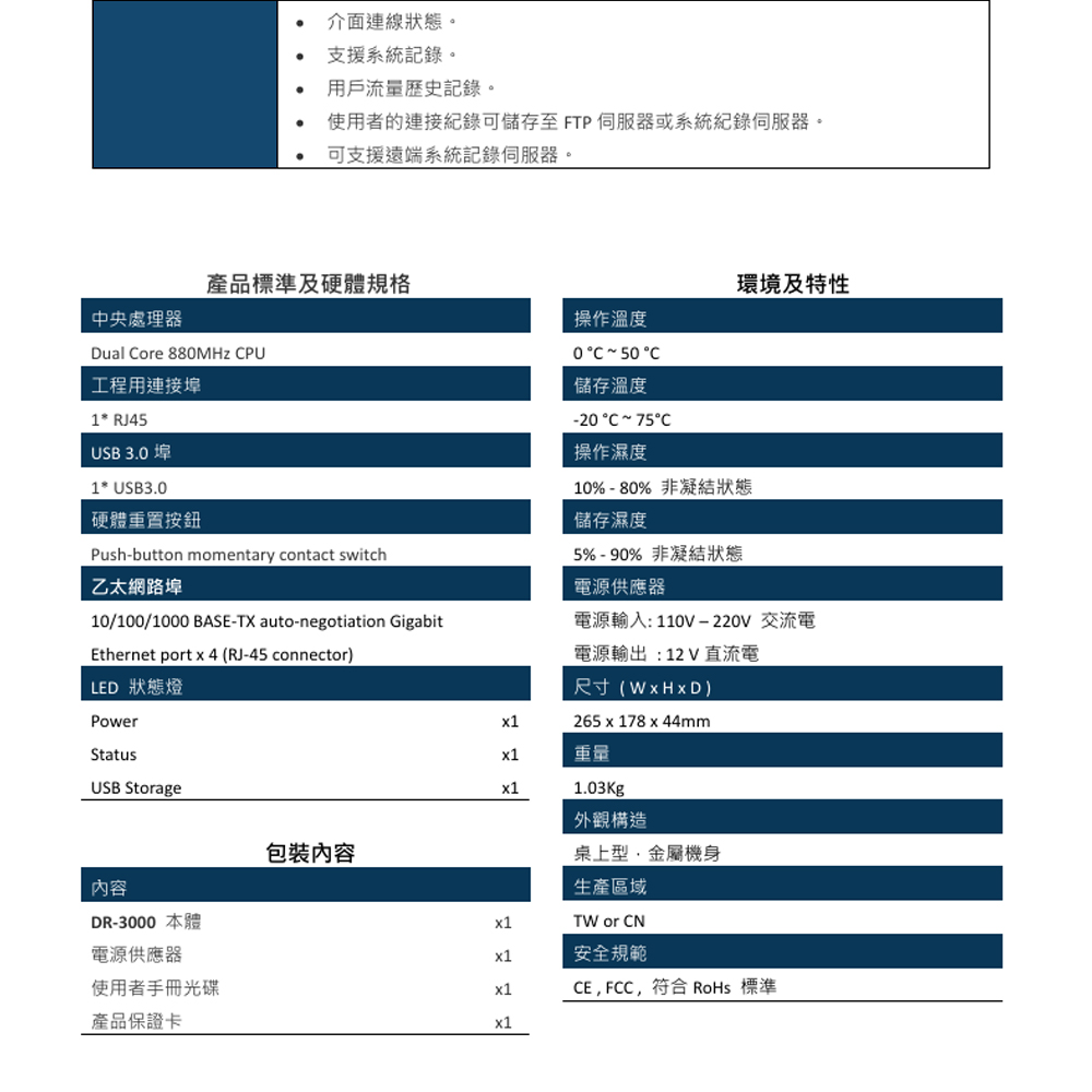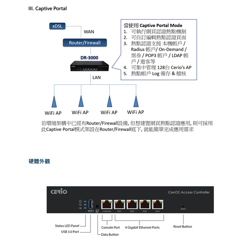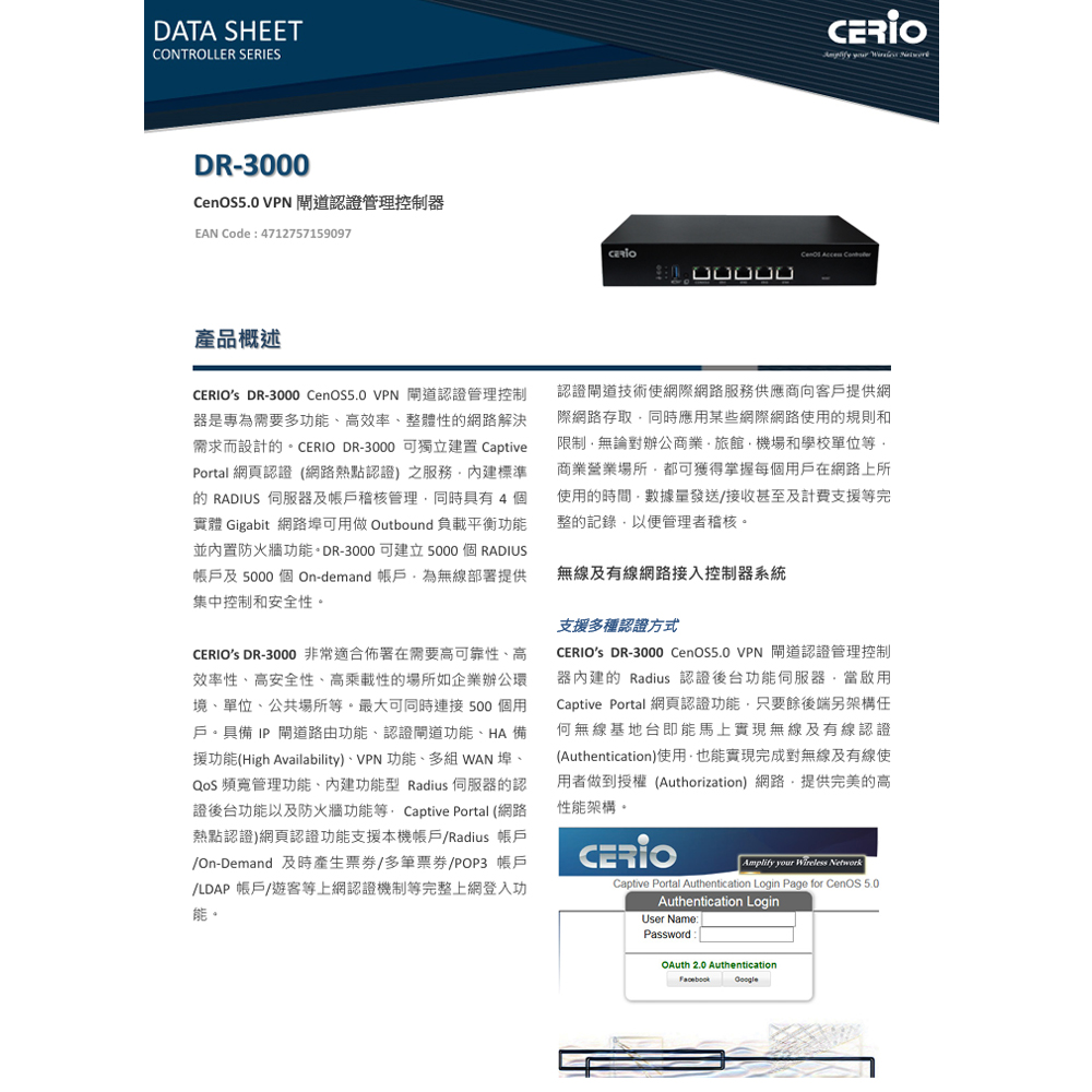 昌運監視器 CERIO 智鼎 DR-3000 CenOS 5.0 VPN 閘道認證管理控制器