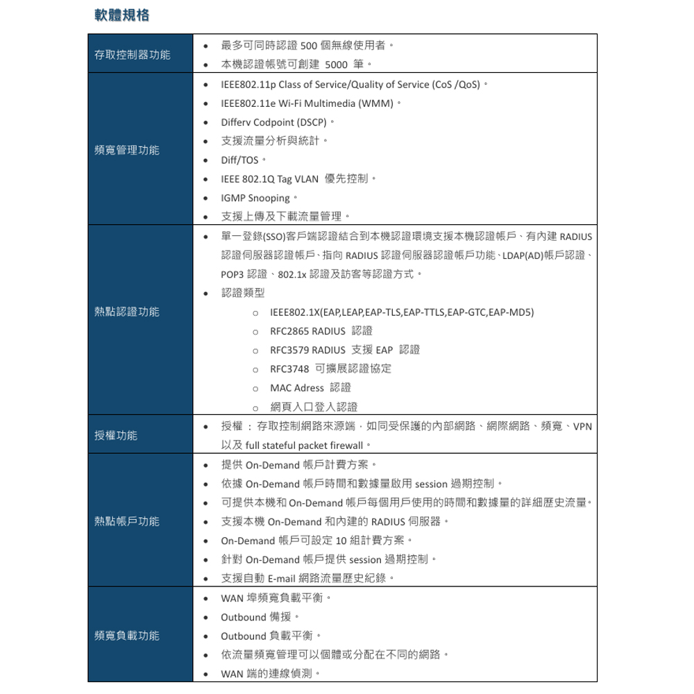 支援環境架構佈建無線基地台環境,相容於任何無線基地台,透過上端DR-3000 的建置使用,串接架構於下端的有線交換器使用者或無線AP存取使用者,皆可輕鬆架構認證登入的安全環境。