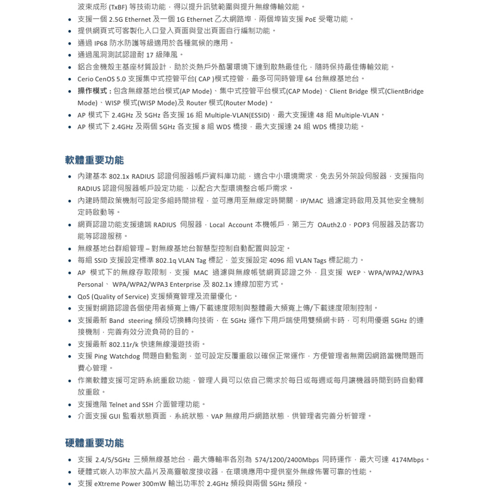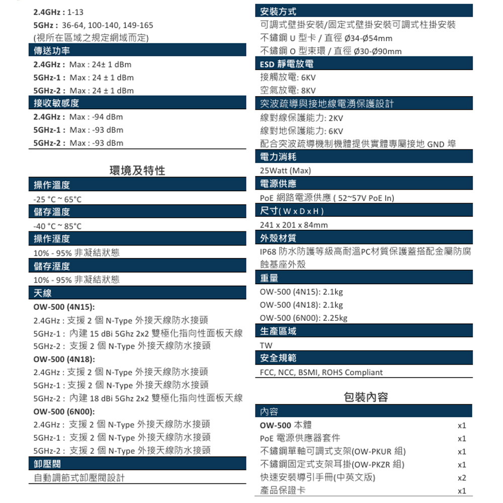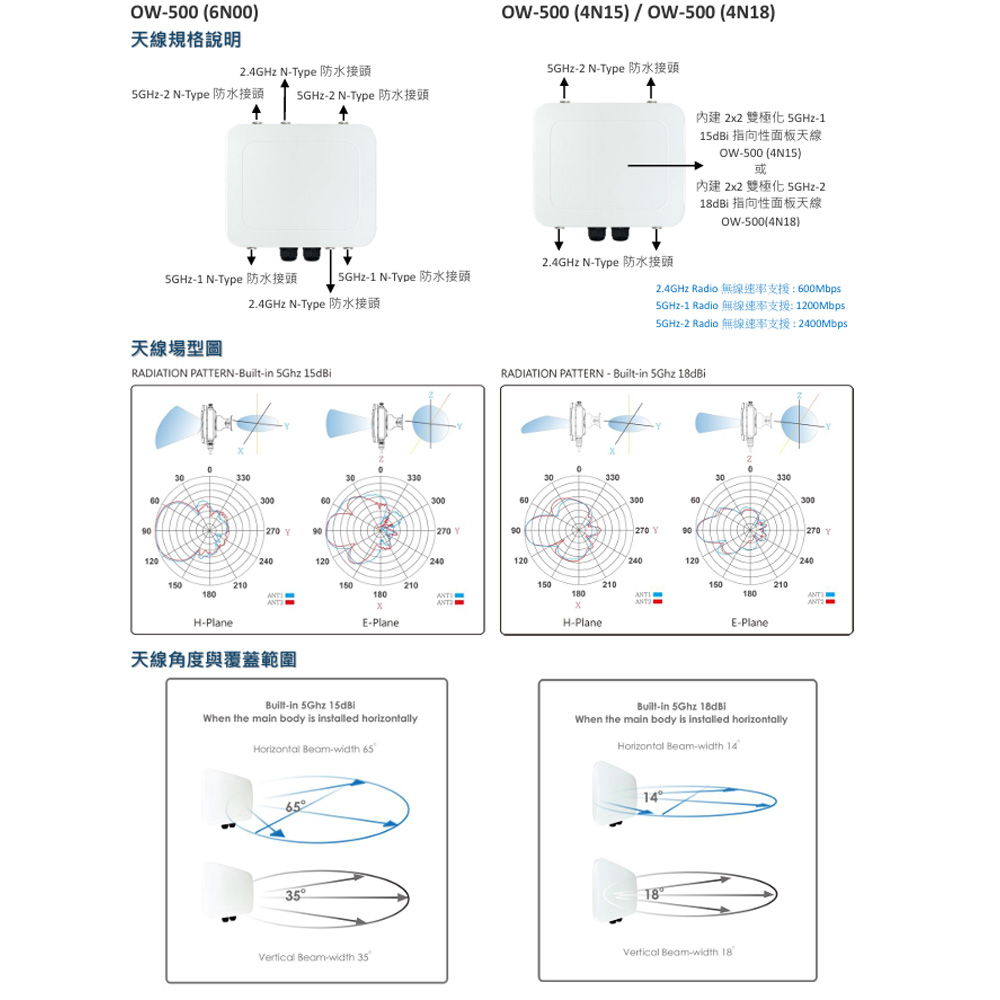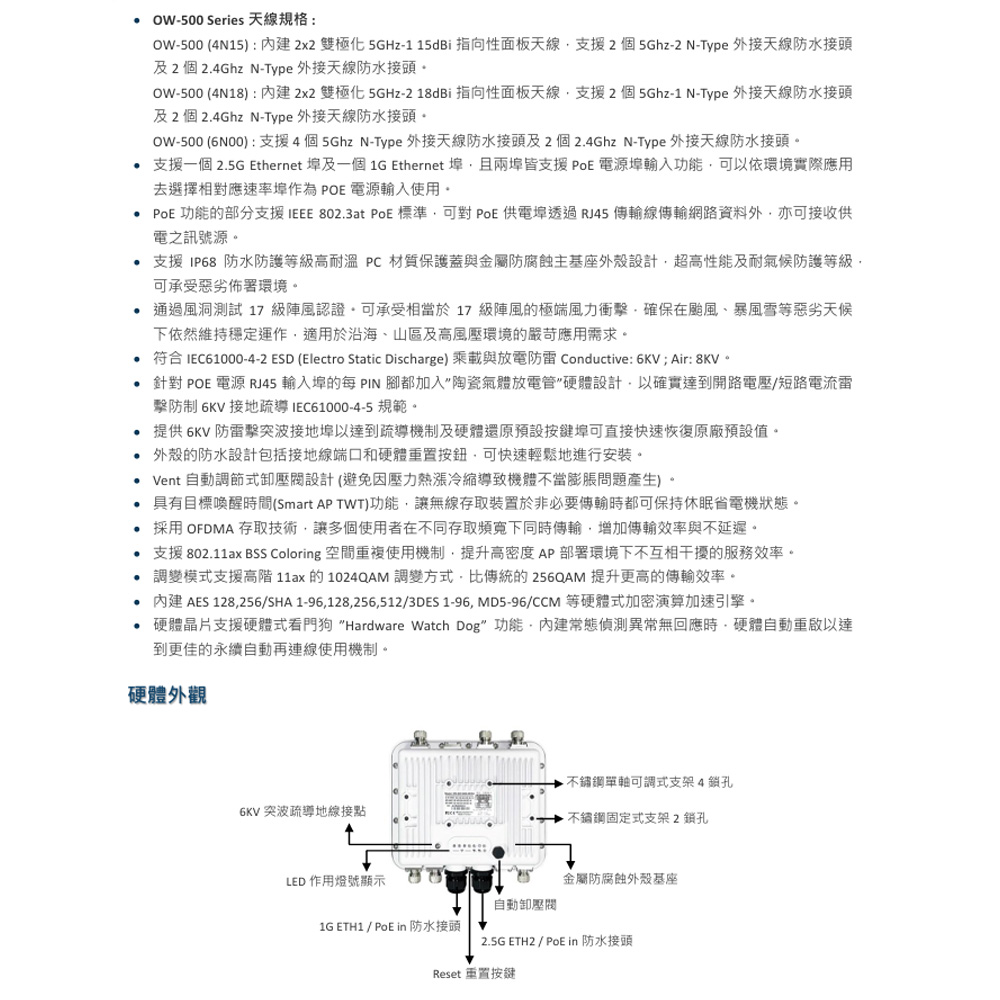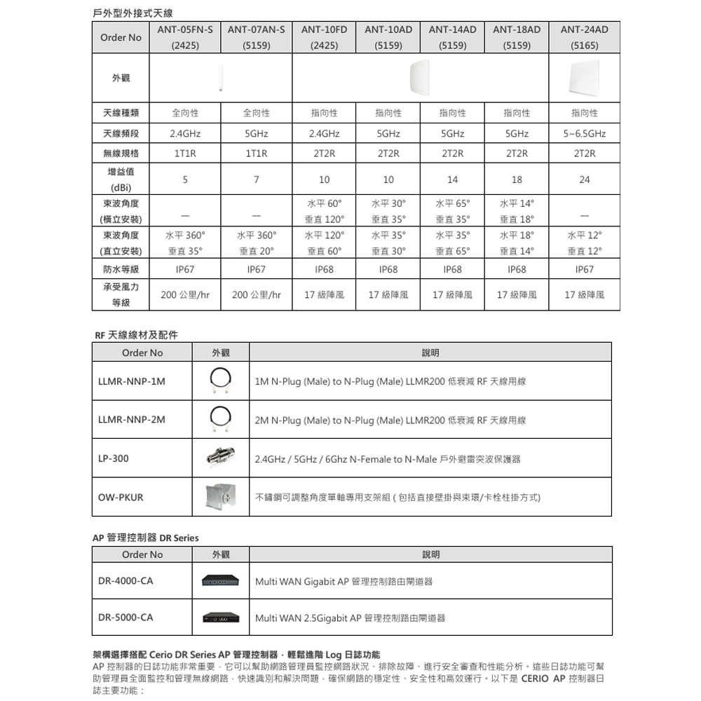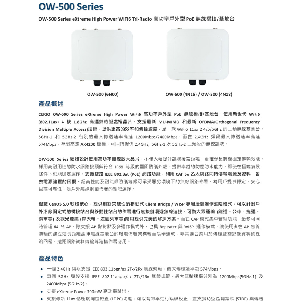 昌運監視器 CERIO 智鼎 OW-500 (4N18) 高功率戶外型 PoE 無線橋接基地台 18dBi Patch ANT