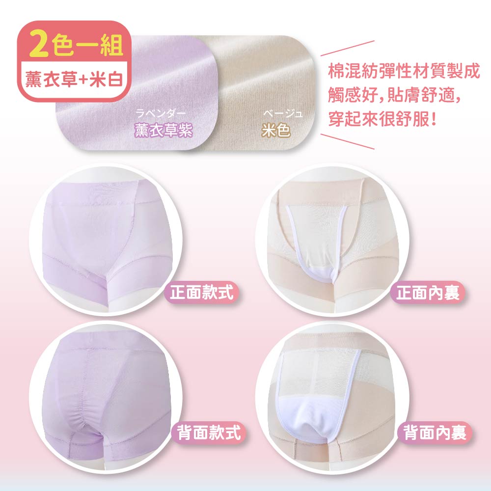 日本【CERVIN】女用速吸安心防漏尿保潔四角失禁褲 2色組・吸水パッドをショーツ内側に内蔵したパワーネットで吊るす「ハンモック」構造にすること・吸水パッド部分は安心の4層構造パッド仕様です。・お出かけにも安心の吸水量約30ml・加齢や運動不足などにより、骨盤底筋のサポート力が低下すると尿漏れの原因になると言われています。・着用すると自然に骨盤底筋を意識できるので毎日のゆるみケアにおすすめのサポートパンツです。・骨盤底筋を下から上へサポートし、さらに骨盤を引き締めることで骨盤底筋への負担を軽減するWサポート構造です。・綿混のストレッチ素材を使用しているので肌ざわりが良く、心地よい履き心地です。・産後の尿漏れが気になる方にもおすすめです。-吸收墊設計在四角褲內部的內置動力網上,形成支撐骨盆底肌肉的「吊床」結構,也能支撐骨盆肌肉-吸收墊部分採用4層結構,使用更安心。-可吸收約 30 毫升水分,方便外出。-由於老化或缺乏運動導致骨盆底肌肉支撐力下降,可能會引發尿失禁。建議穿著來日常護理鬆弛的骨盆底肌肉,穿著時也可以自然地激活您的骨盆底肌肉。-具有雙重支撐結構,從下往上支撐骨盆底肌肉,同時收緊骨盆,減少骨盆底肌肉的壓力。-由棉混紡彈性材質製成,貼膚舒適,穿著舒適。-擔心產後尿失禁的人也可使用。尺寸M 臀圍 87-95cm L臀圍92-100cmLL臀圍97-105cm材質/成分:主體布料:60%聚酯纖維*35%棉*5%聚氨酯乾燥層:100% 聚酯纖維吸水層:100% 純棉防水層:100% 聚酯纖維顏色:薰衣草1件、米白1件產地:中國國際條碼:M 4985697270218 L 4985697270225 LL 4985697270232