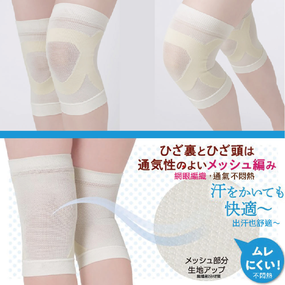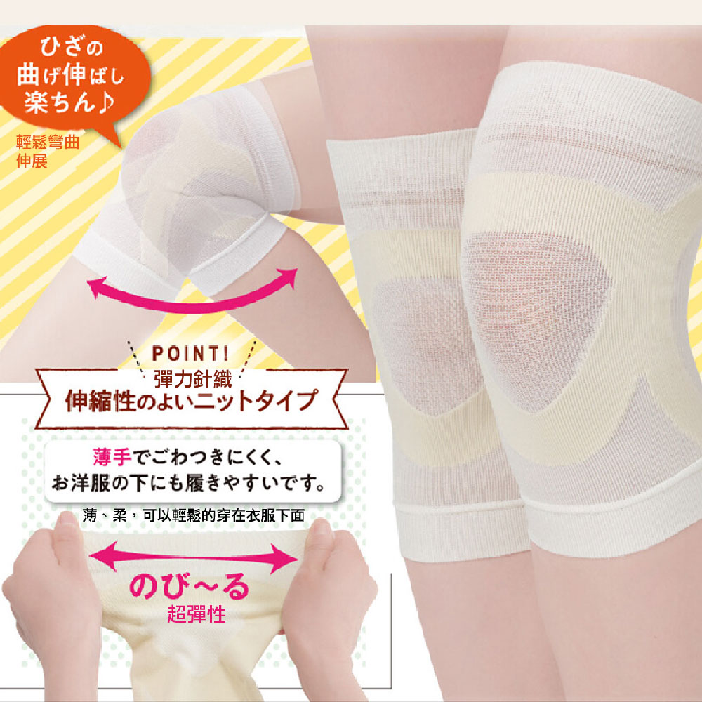 ・切り替え編みのテーピングラインでひざをしっかりとサポートします。・ひざ裏とひざ頭はメッシュ編みになっているので通気性がよくムレにくいです。・伸縮性のよいニットタイプ。・薄手なのでごわつきにくく、お洋服の下にも履きやすいです。・日常動作のサポートとしても、散歩などの軽い運動時にもお使いいただけます。・シルクを使用して編み立てているので、優しい肌あたりです。*日本最受歡迎醫師推薦護具。*日本製造真絲針織材質,固定X型編織貼邊線,為膝蓋提供牢固的支撐。*護膝,膝蓋骨周圍採用網眼編織,透氣不悶熱。*超彈力伸縮,舒適不緊繃。*薄、柔、細緻、高雅,可以輕鬆的穿在衣服下面。*剪裁一體成型無接縫,穿搭無不適感,用作日常活動或散步等輕度運動的支撐。*採用真絲針織,觸感柔軟親膚,高級守護。 注意事項本品不具醫療效果。有下列情況者,使用前請先諮詢醫師:穿戴部位有傷口/搔癢/孕婦/高血壓/心臟/腎臟疾病/血循不佳/糖尿病/皮膚炎。合成纖維過敏者,請勿過度勒緊。使用中若有不適,請停止使用並諮詢醫師。請勿強力拉扯,避免損壞商品。請放置於嬰幼兒不易拿取處 。 請勿接近火源。使用效果因人而異。 材 質:超彈性尼龍、絲綢 顏 色:象牙白尺 寸:膝圍25-45cm洗滌方式:手洗/水溫低於40C/中性洗劑/勿漂白/勿烘乾/勿熨燙/陰涼處懸掛晾乾/勿專業乾洗產 地:日本製國際條碼:4985697252597https://s-cf-tw.shopeesz.com/file/tw-11134208-23030-u5wigxk6t5nv4f