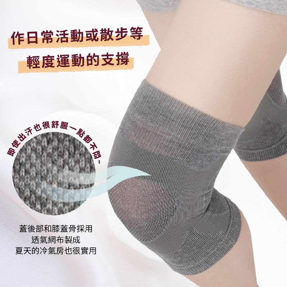 日本製【CERVIN】紅外線備長炭保暖護膝・切り替え編みのテーピングラインでひざをしっかりとサポートします。・ひざ裏とひざ頭はメッシュ編みになっているので通気性がよくムレにくいです。・伸縮性のよい二ットタイプ。・薄手なのでごわつきにくく、お洋服の下にも履きやすいです。・日常動作のサポートとしても、散歩などの軽い運動時にもお使いいただけます。・遠赤外線を放射するといわれる備長炭を練り込んだ繊維を使用しています。・夏場の冷房対策としても重宝します。*日本製造針織材質,固定X型編織貼邊線,為膝蓋提供牢固的支撐。*膝蓋後部和膝蓋骨周圍均採用網眼針織編織法,透氣不悶熱。*纖維中具有遠紅外線備長炭,結構緻密,給予膝關節周圍的溫暖支撐。*超彈力伸縮,舒適不緊繃。*薄、柔、細緻、高雅,可以輕鬆的穿在衣服下面。*它可以用作日常活動或輕度運動(例如散步)的支撐。*剪裁一體成型,穿搭無不適感。*輕巧設計編織,觸感柔軟親膚,高級守護。*夏天的冷氣房也很實用。注意事項本品不具醫療效果。有下列情況者,使用前請先諮詢醫師:穿戴部位有傷口/搔癢/孕婦/高血壓/心臟/腎臟疾病/血循不佳/糖尿病/皮膚炎。合成纖維過敏者,請勿過度勒緊。使用中若有不適,請停止使用並諮詢醫師。請勿強力拉扯,避免損壞商品。如果佩戴時受到強烈摩擦,或者在被水或汗水弄濕時與其他物體摩擦,顏色可能會發生轉移。長時間暴露在陽光或熒光燈下可能會導致變色。請放置於嬰幼兒不易拿取處 。 請勿接近火源。使用效果因人而異。訂購時請先審慎確認及測量適用尺寸。材 質:尼龍、棉、其他顏 色:灰尺 寸:膝圍25-45cm洗滌方式:手洗/水溫低於30°C/中性洗劑/勿漂白/勿烘乾/勿熨燙/陰涼處懸掛晾乾/勿專業乾洗/用毛巾壓去過多水分後陰乾產 地:日本製國際條碼:4985697252580