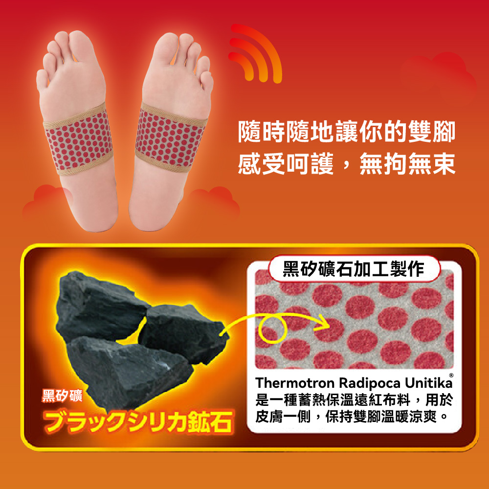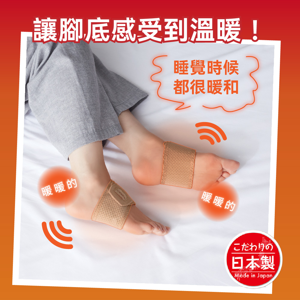 日本製【CERVIN】紅外線保暖腳底・蓄熱・保温・遠赤効果で冷えやすい足裏をしっかりと暖めます。・ブラックシリカ鉱石をパウダー状にしてサポーターの内側全面にプリント加工しています。・蓄熱・保温・遠赤生地のサーモトロン ラジポカ ユニチカ(R)を肌側に使用しているので、温かさをキープして足元を冷やしません。・肌側と外側の生地の間にはフィルムを貼り合わせているので、風を通しにくい仕様にしています。・面ファスナーで巻くタイプなので、つま先・足の甲など冷えやすい部位に合わせて、お好みのフィット感で留められます。・薄手なのでお家でも外出時にも冷え対策としてご使用頂けます。*儲存熱量*增加溫暖*增加遠紅效果,以溫暖容易寒冷的鞋底。*黑矽礦石被磨成粉末並印刷在支架的整個內表面上。*ThermotronRadipoca Unitika(R)是一種蓄熱*保溫*遠紅布料,用於皮膚一側,保持雙腳溫暖涼爽。*貼身面和外層布料之間貼有一層薄膜,可防風。*由於使用鉤環扣件包裹,您可以根據腳趾、腳背或其他容易變冷的部位,根據自己的喜好調整貼合度。*由於它很薄,因此可以在家中或外出時用作防寒措施。《注意事項》本品不具醫療效果。請勿過度勒緊,使用中、使用後若有不適,請停止使用並諮詢醫師。就寢時請勿穿戴。請勿穿戴於有傷口、皮膚炎、皮膚發癢部位,或對橡膠製品有過敏者。請勿強力拉扯,避免損壞商品。請放置於嬰幼兒不易拿取處。請勿接近火源。使用效果因人而異。材質:尼龍*聚氨酯尺寸:腳圍:20-30cm顏色:米色洗滌方式:水溫攝氏30度以下/手洗/中性洗劑/勿漂白/勿烘乾/勿熨燙/陰涼處懸掛晾乾/勿專業乾洗/輕輕擠壓過多水分後陰乾/陰涼處定型懸掛晾乾/請勿將織物長時間暴露在陽光或螢光燈下,否則可能會導致褪色/請勿擰乾織物、壓洗產地:日本製國際條碼:4985697261957