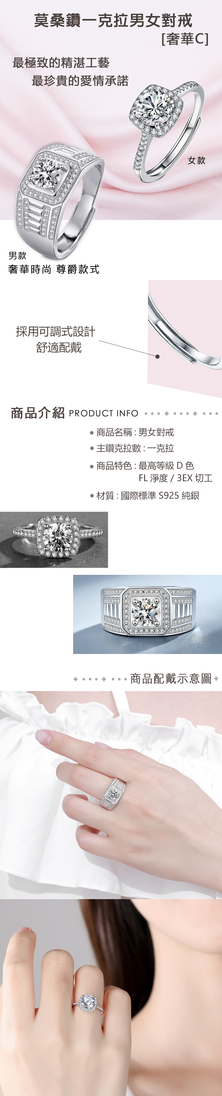 【CF鑽飾】戒指《1克拉男女對戒 奢華C》莫桑鑽 純銀 鑽戒