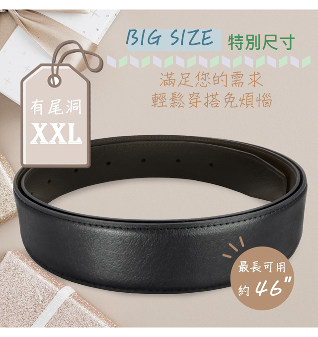 【CH-BELT 銓丞皮帶】男加長皮帶 加大腰XXL 針扣夾座 男休閒皮帶(黑/咖XXL)