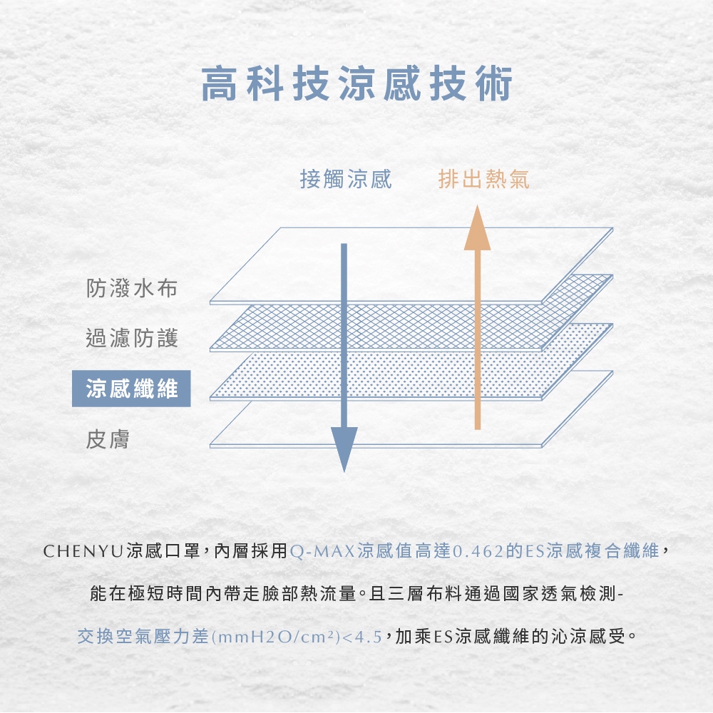 #一戴即涼 #顛覆絕對悶熱 #平面版型尺寸:17.5*9.5 cm-平面版型經典再現,涼感隨行微涼抗悶熱|沁涼有感獨家ES科技涼感內層科學認證實測4倍涼感瞬間帶走口罩內部悶熱氣流|透氣親膚集中三摺設計立即撐開口鼻呼吸空間透氣滑順面料解決悶熱及摩擦不適|完美防護BFE達99.8%30片獨立包裝,防塵又衛生-【CHENYU辰昱 平面涼感醫療口罩 (30入)】▍產品資訊 / Information.品牌:CHENYU辰昱.醫療器材品名:“辰昱”立體醫療口罩(未滅菌).許可證字號或登錄字號:衛部醫器製壹字第010173號.許可證所有人或登錄者之名稱:宏廷富國有限公司.許可證所有人地址:嘉義縣民雄鄉秀林村林子尾67號.販賣業醫療器材商名稱:宏廷富國有限公司.販賣業醫療器材商地址:嘉義縣民雄鄉秀林村林子尾67號.販賣業醫療器材商許可證:嘉縣藥販字第MD6240011038號.製造業醫療器材商名稱∣宏廷富國有限公司 委託萬洲通國際企業股份有限公司製造.製造業醫療器材商許可證∣南市醫器製字第MD6105000213號.製造產地:100%台灣 TAIWAN ‧ 含雙鋼印.製造日期∣2024/09 (實際日期依當次出貨批次為準,標示於紙盒).有效期限:5年.主要成分或材料∣內層‧內層ES涼感不織布、中層‧過濾防護熔噴布、外層‧防潑水不織布.口罩尺寸∣約17.5(長)*9.5(寬)cm(±0.5) *有鼻樑條.度量/販售數量/販售規格∣盒裝一盒30入/每片獨立包裝.儲存條件:請存放於陰涼乾燥處.有效期限∣5年.符合CNS 14774國家法規標準‧細菌過濾率(%)BFE≥95%‧壓差(mmH₂O/cm²)<5.0▍注意事項 / Notice本產品適用一般民眾、病人與醫護人員穿戴,可阻擋微生物、體液及粒狀物質的傳遞本產品為一次性口罩,請勿重覆使用或清洗本產品不具防毒功能,請勿使用於有毒氣體環境當呼吸有異味時,請立即更換。具量測功能之產品,其定期校正服務之項目及據點資訊。▍藥商執照.藥商許可執照∣嘉縣藥販字第MD6240011038號.藥商公司名稱∣宏廷富國有限公司.藥商公司地址∣嘉義縣民雄鄉秀林村林子尾67號.藥商諮詢專線∣05-2220580(週一至週五上班日).線上服務時間∣週一至週五 9:00-18:00.消費者使用前應詳閱醫療器材說明書(請詳閱產品使用說明書或商品圖).購買前請查閱本官網購物須知▍注意事項&售後服務.購買前請詳閱購物須知.消費者使用前應詳閱醫療器材說明書1.商品操作方面及維修服務請聯繫客服。2.僅針對商品本身有七天內新品瑕疵更換之權益,並請提供開箱影片。