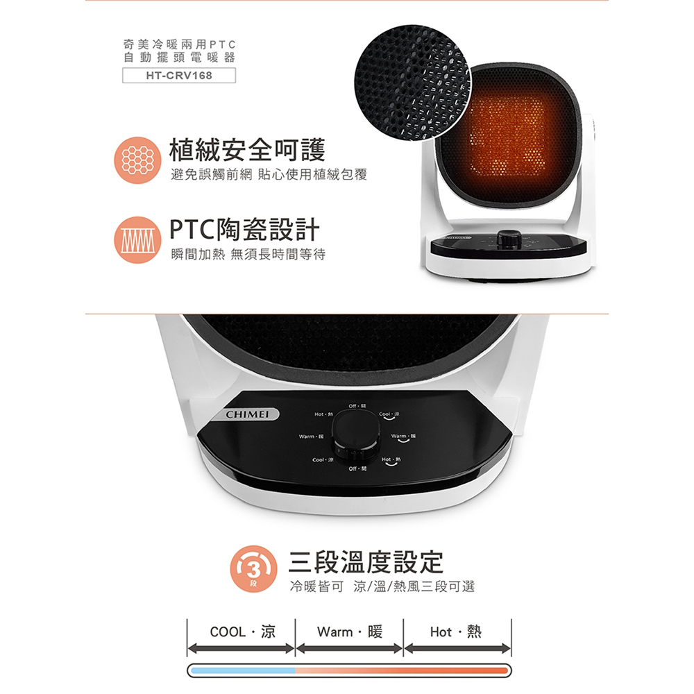 CHIMEI 奇美 PTC自動擺頭陶瓷電暖器 涼暖兩用 HT-CRV168