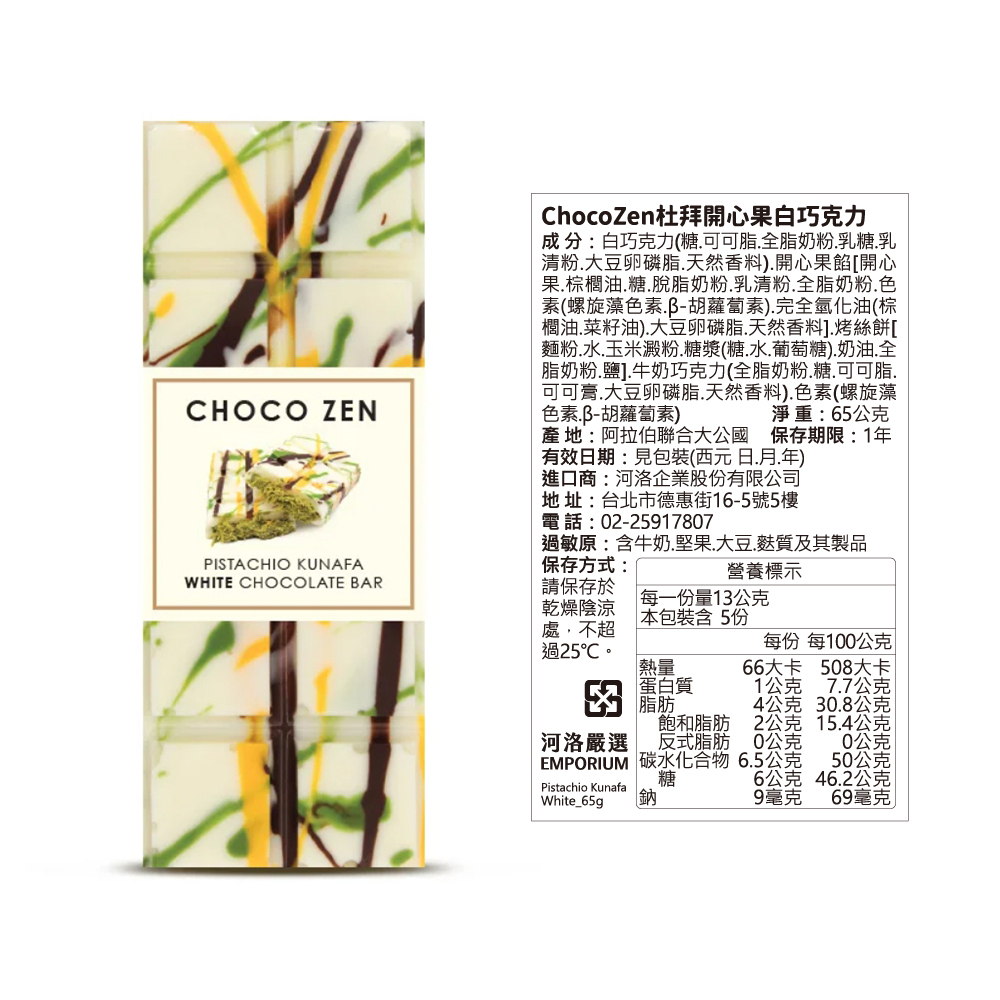 【ChocoZen】杜拜開心果白巧克力 65g (貨號18CZ003)