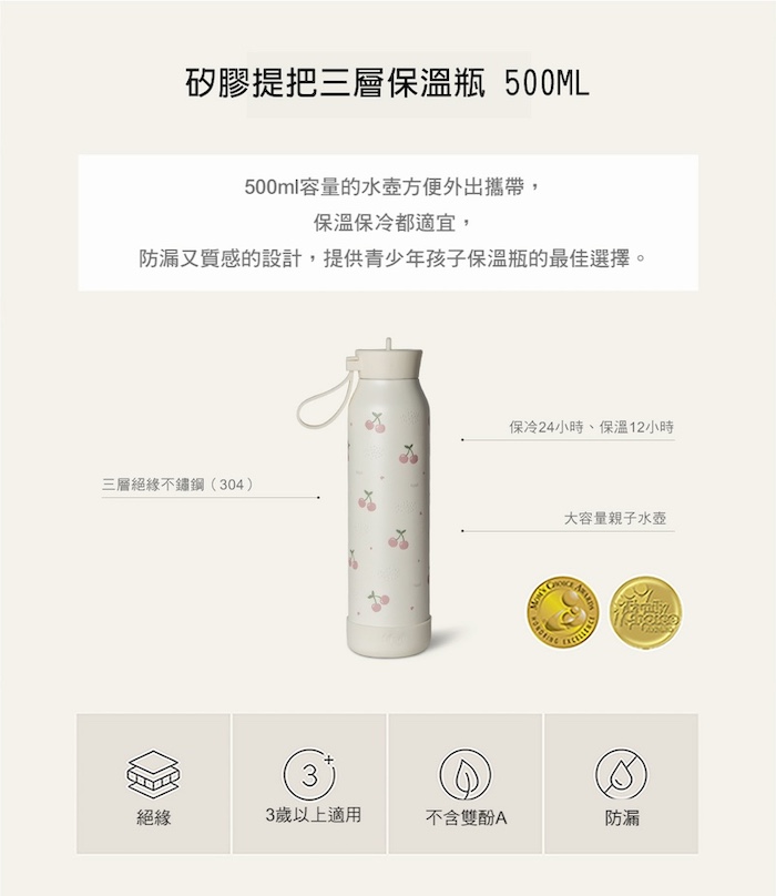 官方直營【Citron】矽膠提把三層保溫瓶_500ml_多款可選
