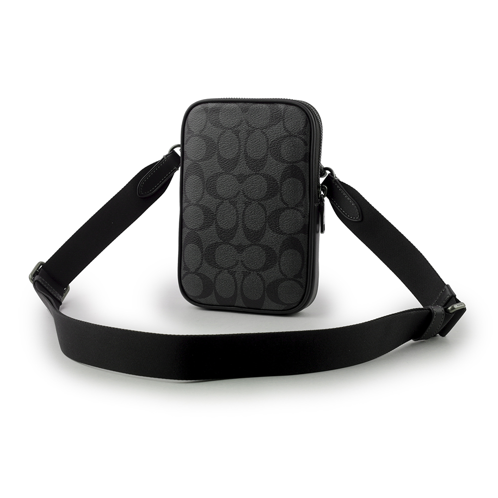COACH Aden 塗層帆布及牛皮迷你斜背包/手拿包/炭灰色