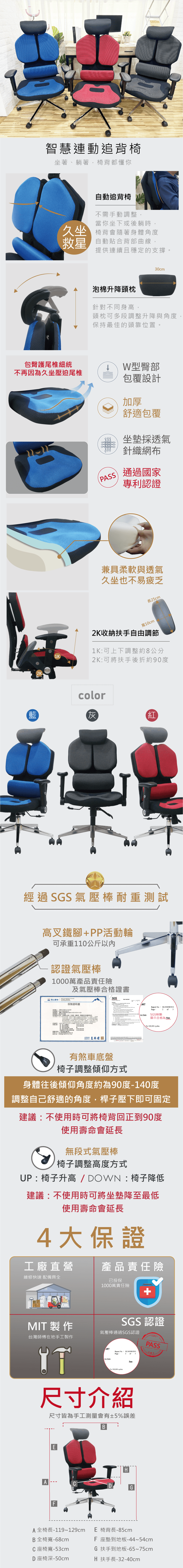 產地:台灣 尺寸:如圖標示 材質:高彈性透氣網布+合格認證氣壓棒+五爪椅腳+鐵件 組裝方式:此商品需自行組裝、附組裝說明書及組裝影片QR碼 保養方式:請勿水洗勿漂白勿烘乾,擦拭即可 👍🏻氣壓棒通過SGS認證 👍🏻工廠直營維修快速配件齊全 👍🏻台灣師傅在地手工製作 👍🏻已投保1000萬產品責任險