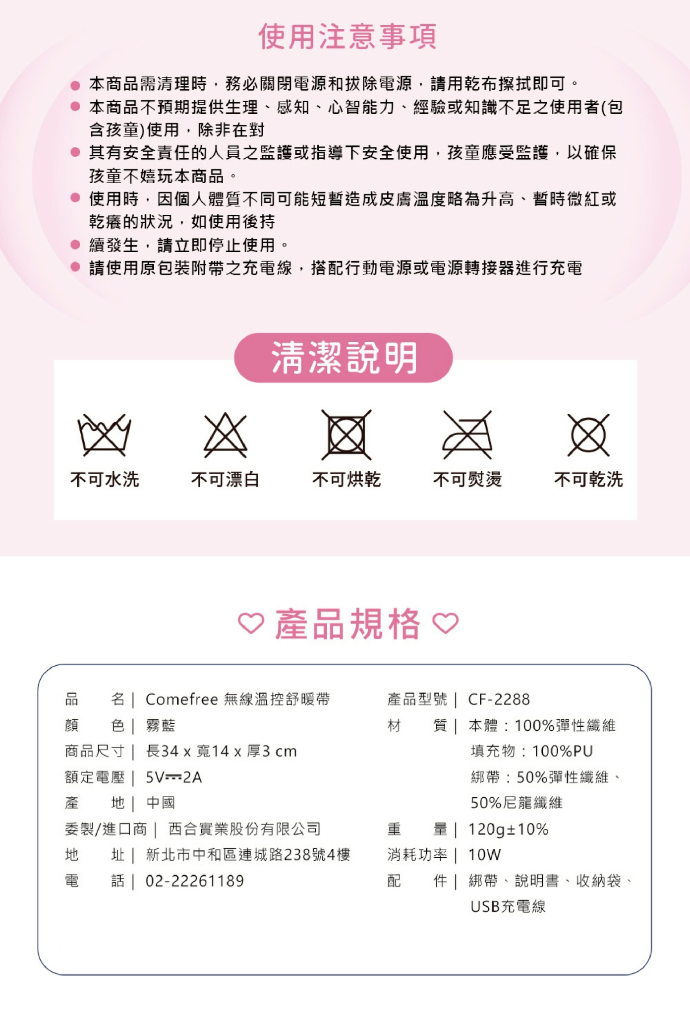 Comefree 多部位無線溫控舒暖帶(34x14cm) [西合]