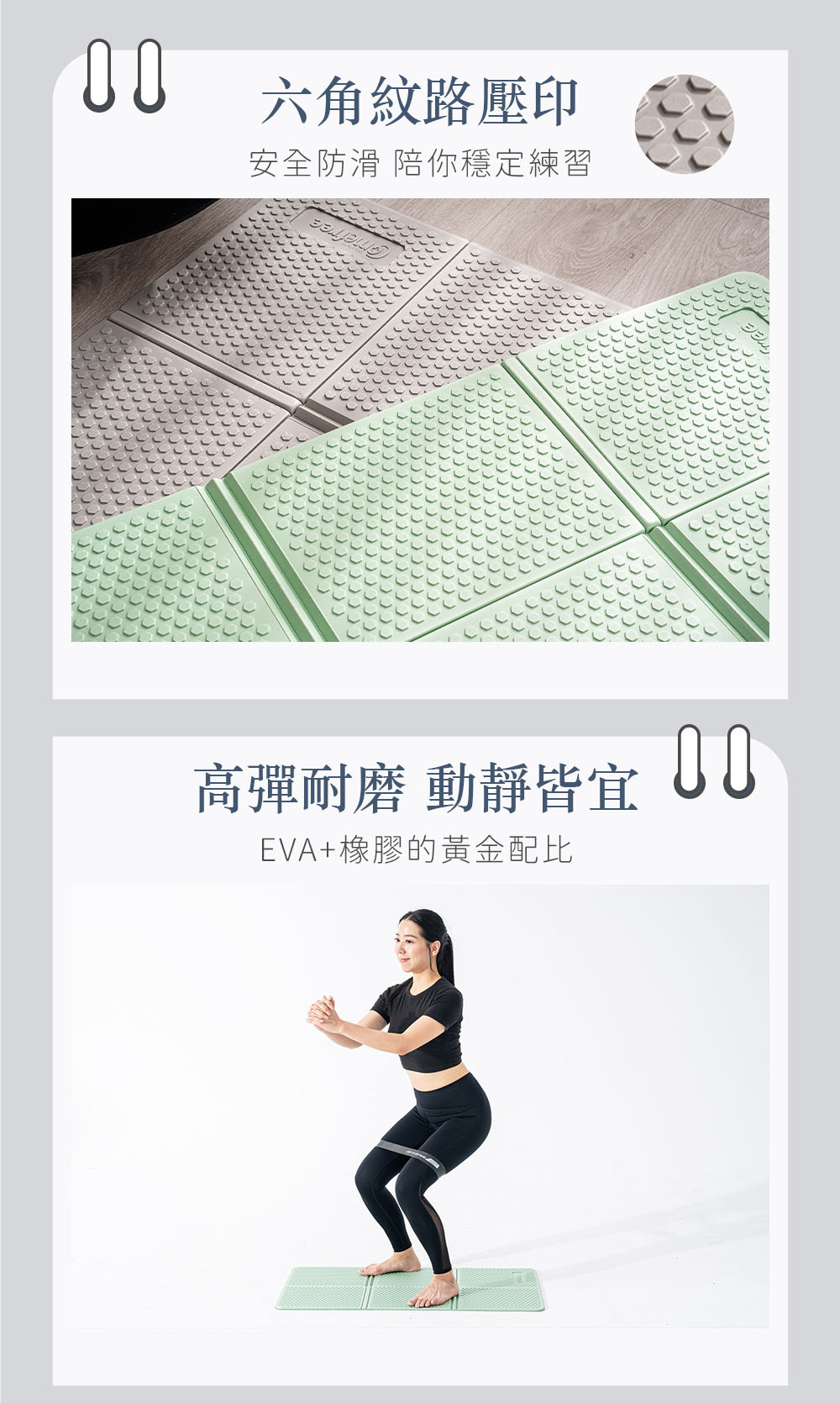 2. EVA+天然橡膠材質,止滑親膚,運動使用更安全。