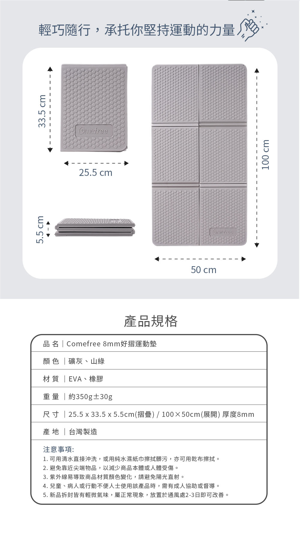 Comefree 8mm輕量好摺EVA運動墊 山綠色[西合]
