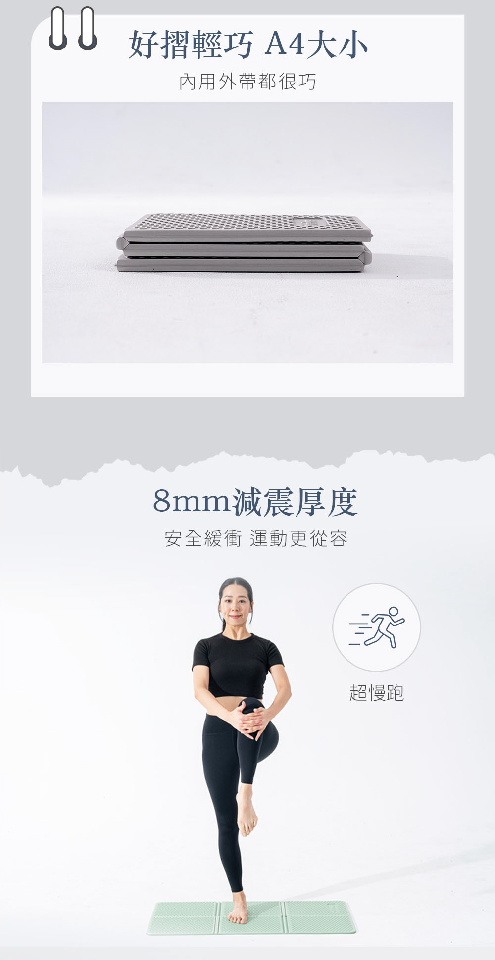 4.可任意摺疊所需尺寸,適用各類運動防撞緩衝、如超慢跑、跳繩、體操等。