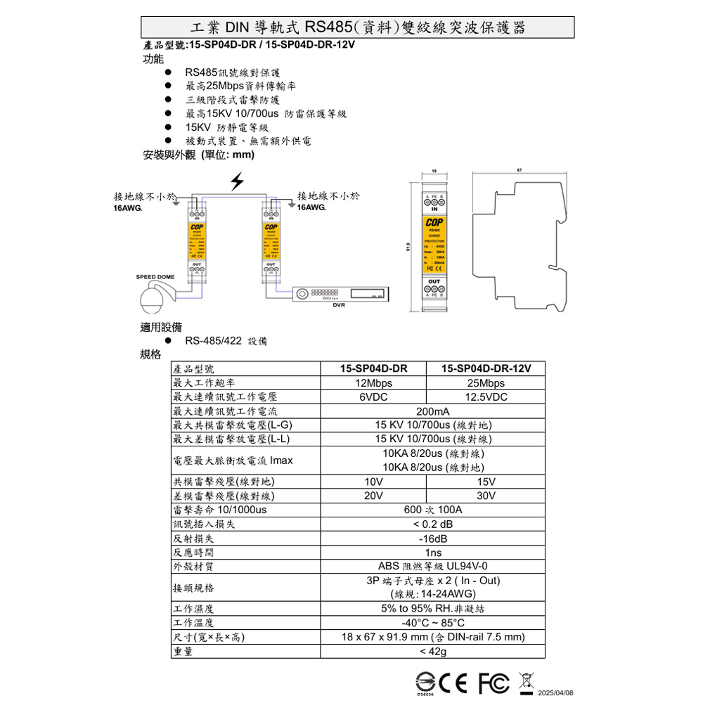 產品型號 15-SP04D-DR