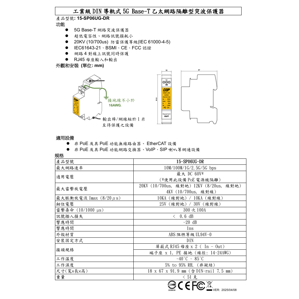 昌運監視器 工業級DIN導軌式5G Base-T乙太網路隔離型突波保護器