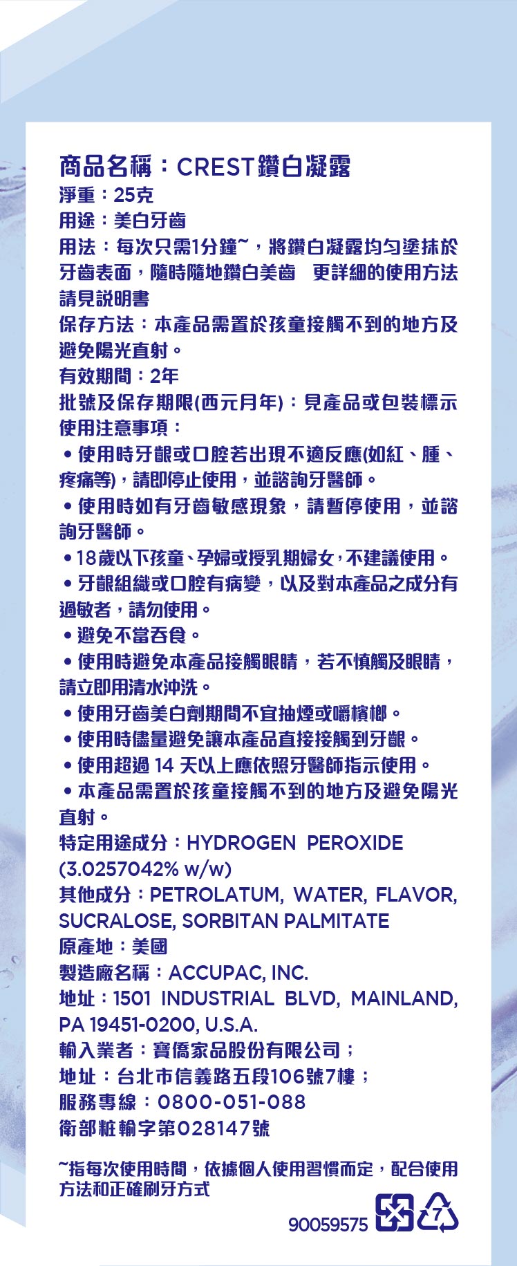 ◎品牌:Crest ◎規格: 25g克 x 1 x 1PC盒