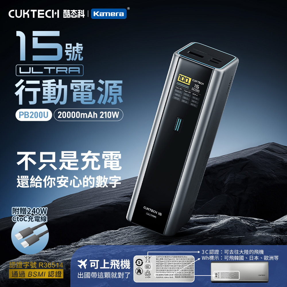 【Wh+CCC】CUKTECH 酷態科 15號Ultra 210W 行動電源 20000mAh (PB200U) - 黑色