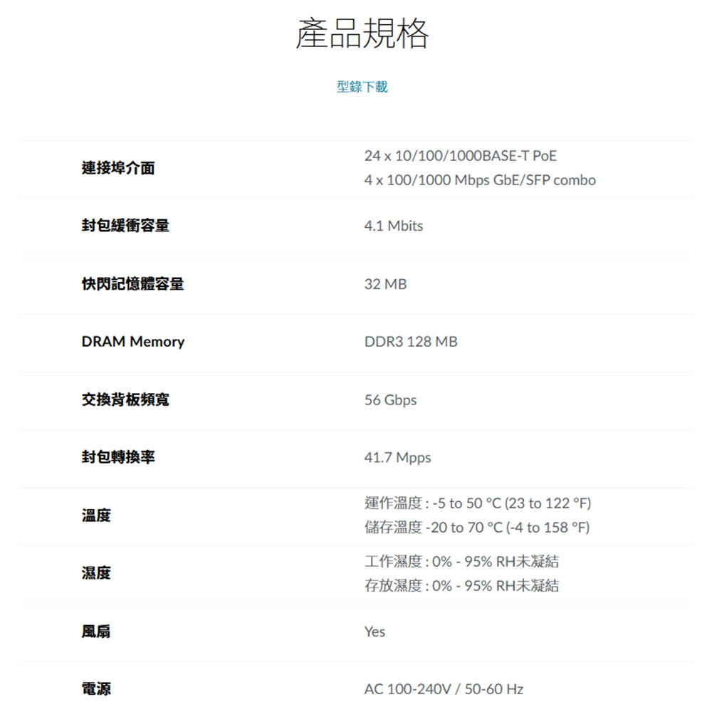 -24埠10/100/1000Mbps(1Gbps) base-T PoE。