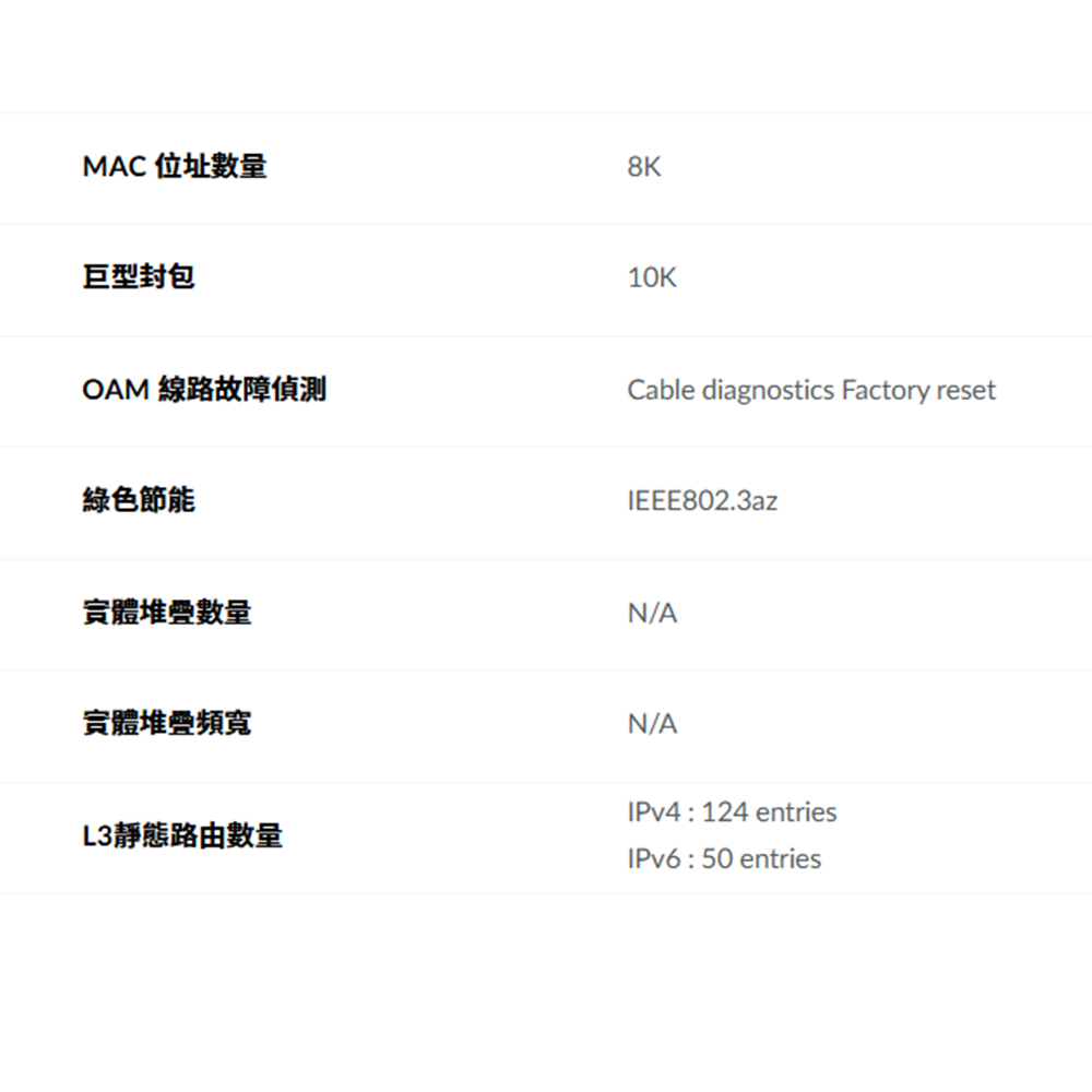 -4埠100/1000Mbps GbE/SFP光纖combo組合埠。